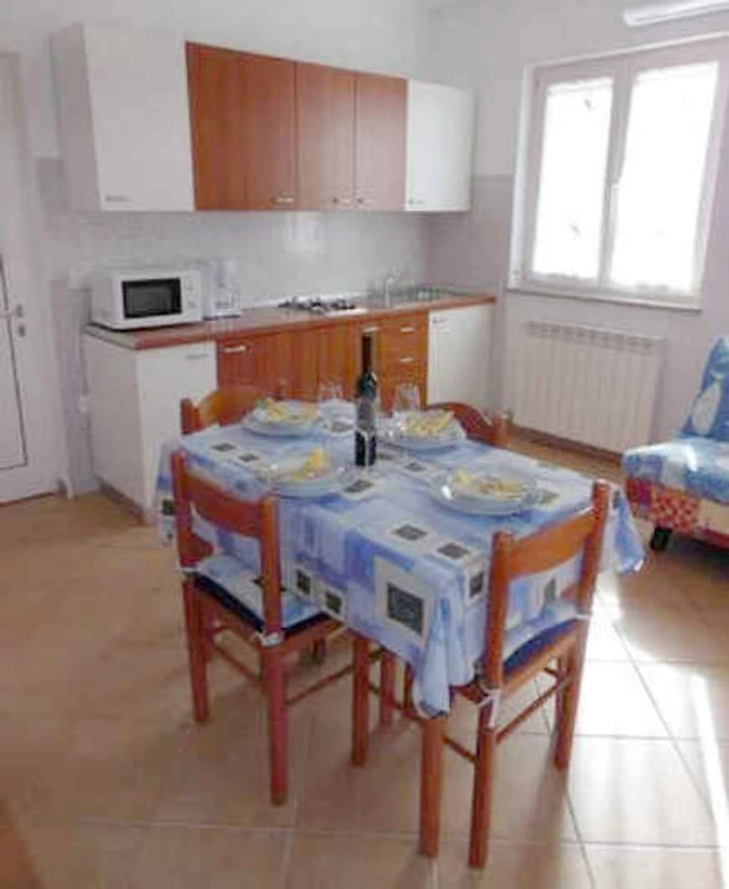 Ligging: Zambratija, wijk Zambratija. De vakantiewoning ligt in een vrijstaand éénsgezinswoning en is functioneel en in lokale stijl ingericht. Het grondstuk is in een woongebied aan de rand van de plaats. Deze plaats is populair vanwege het ligt op een helling op een rustige en zonnige plek. De 2 m lange toegangsweg naar het terrein gaat via een geasfalteerde zijstraat. Bij het huis zijn U 4 parkeerplaatsen voor meerdere auto's op het perceel beschikbaar. De dichtsbijzijnde winkels zijn op 400 m afstand, restaurant 400 m en centrum 600 m. bank in Bašanija 600 m. overdekt zwembad, sauna elk 1500 m in Hotel Istra. dokter in Katoro 1500 m. station in Kopar 30 km. apotheek in Umag 4,6 km.