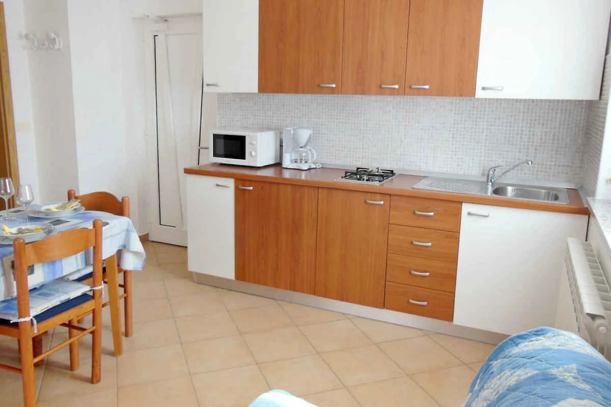 Uw vakantiewoning: Uw vakantiewoning beslaat 1 verdieping, 2 kamers (daarvan 1 slaapkamer), is 36 m² groot en is geschikt voor maximaal 4 personen. Een airconditioning zorgt op hete dagen voor een aangename temperatuur. Op koude dagen kan uw vakantiewoning verwarmd worden met een elektrische verwarming. Roken is binnen niet toegestaan. De ingang is im Erdgeschoss en leidt via 2 traptreden direct in de woonkeuken. De indeling van de kamers is als volgt: recreatieruimte met 1 extra bed op slaapbank, eethoek en TV. De eethoek heeft plaats voor 4 personen. U heeft toegang tot het balkon met tuinmeubelen, 1 tafel en 4 stoelen. slaapkamer met 1 tweepersoonsbed. kookhoek met eethoek, gasfornuis, bakoven, afzuigkap, koelkast, magnetron, koffiemachine, broodrooster en elektrische waterkoker. De eethoek heeft plaats voor 4 personen. U heeft toegang tot het terras. badkamer met douche, 1 wastafel, WC en venster.