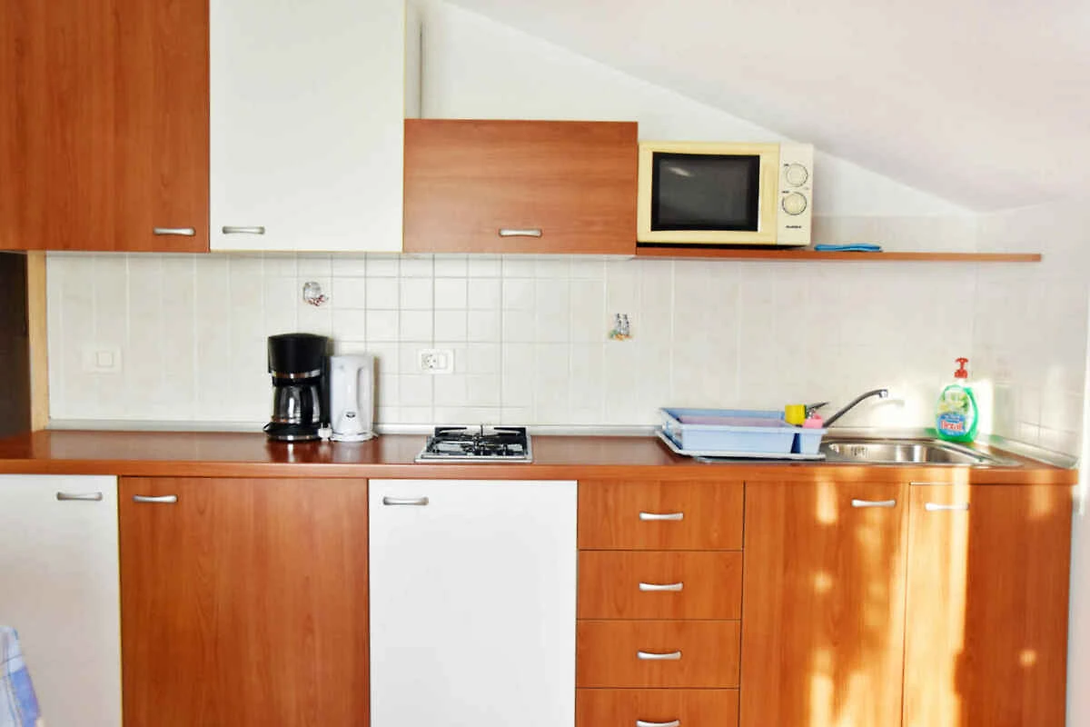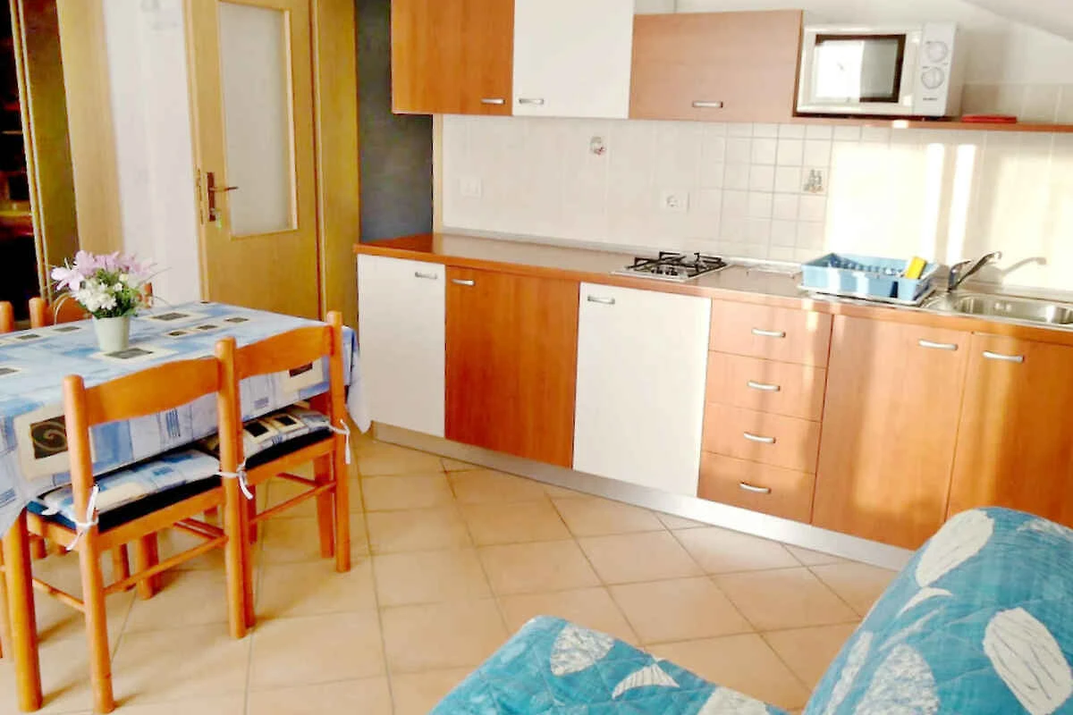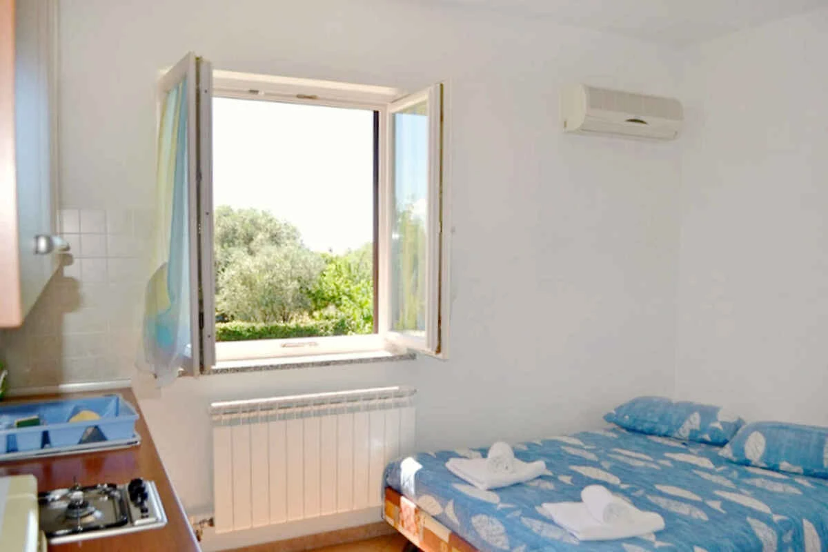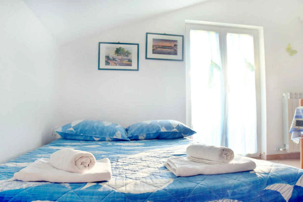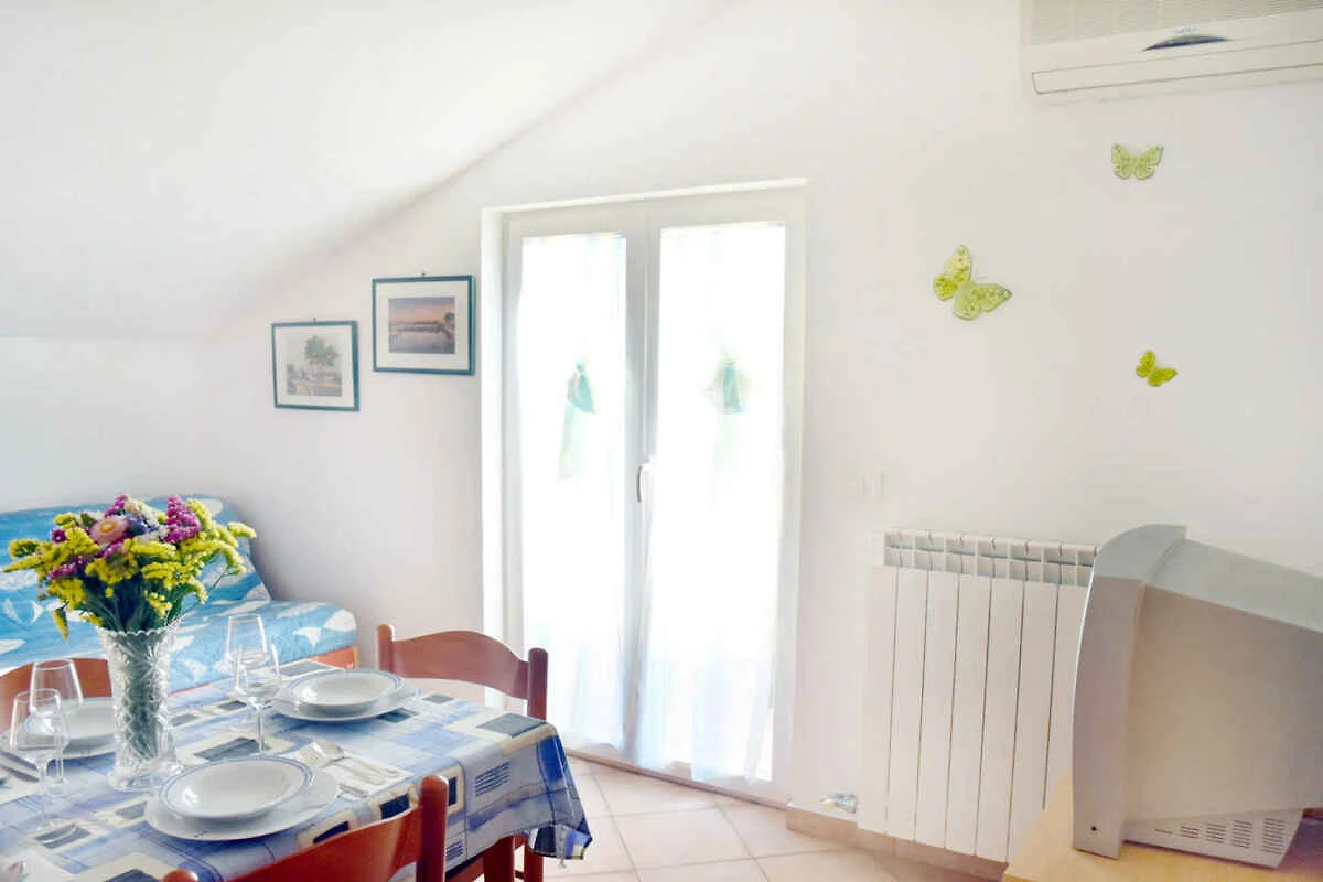 Ligging: Zambratija, wijk Zambratija. De vakantiewoning ligt in een vrijstaand éénsgezinswoning en is functioneel en in lokale stijl ingericht. Het grondstuk is in een woongebied aan de rand van de plaats. Deze plaats is populair vanwege het uitzicht op de zee en het ligt op een helling op een rustige en zonnige plek. De toegangsweg naar het terrein gaat via een geasfalteerde zijstraat. Bij het huis zijn U 4 parkeerplaatsen voor meerdere auto's op het perceel beschikbaar. Openbare parkeerplaatsen zijn op de straat voor het huis. De dichtsbijzijnde winkels zijn op 400 m afstand, restaurant 400 m en centrum 600 m. bank in Bašanija 800 m. overdekt zwembad, sauna elk 1,6 km in Hotel Istra. dokter in Katoro 1,6 km. station in Kopar 30 km. apotheek in Umag 4,6 km.