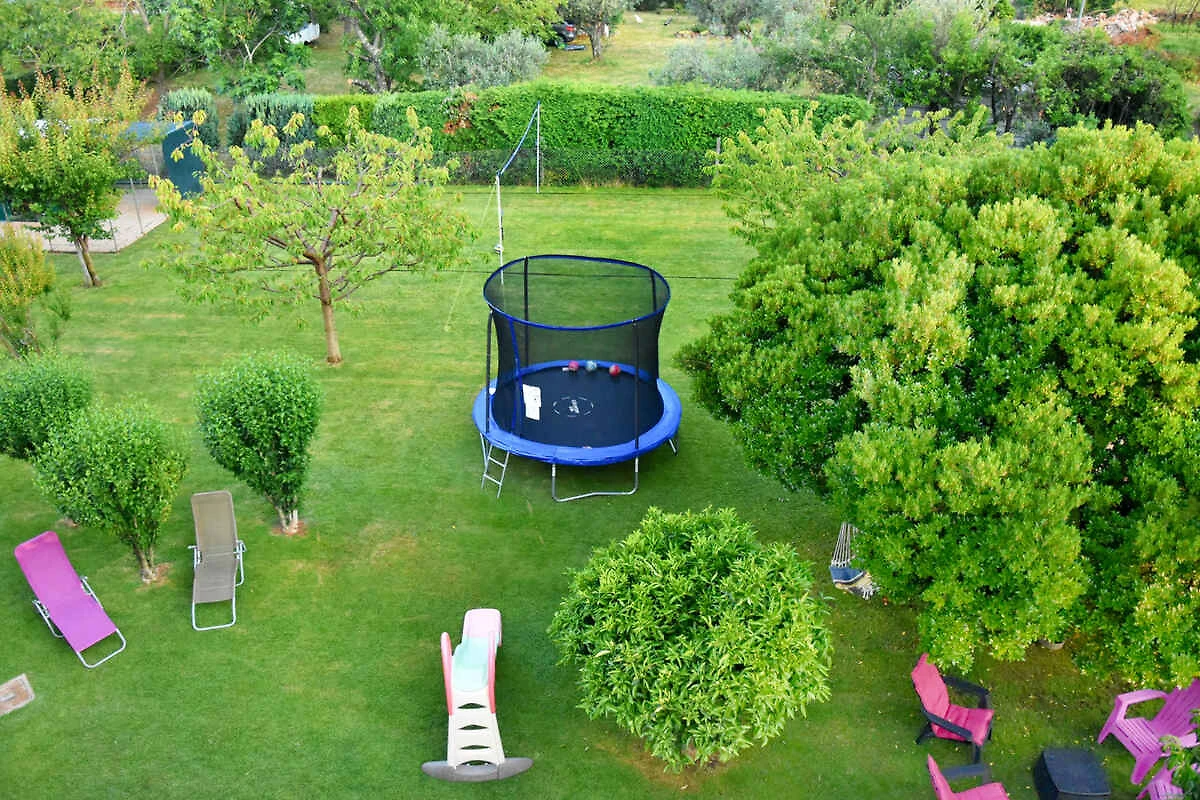 De vakantiewoning ligt op een 900 m² groot, gesloten terrein met tuin met weide, bloemen, struiken en bomen. Het terrein is met een hek omsloten. Verder heeft het landgoed een binnenplaats. De verhuurder woont permanent in het huis of, heeft een aparte ingang. De inrichting is voor u gemeenschappelijk gebruik beschikbaar. U kunt buiten relaxen op de ligweide. Romantische avonden belooft de kampvuurplaats. Trampoline za djecu.
