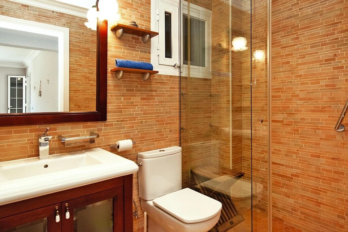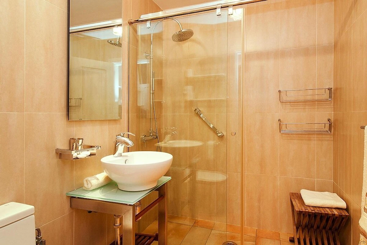Op de 1e etage: (slaapkamer(1-pers. bed, 1-pers. bed), slaapkamer(1-pers. bed, 1-pers. bed), slaapkamer met badkamer(1-pers. bed, 1-pers. bed, ligbad, toilet), badkamer(douche, toilet))