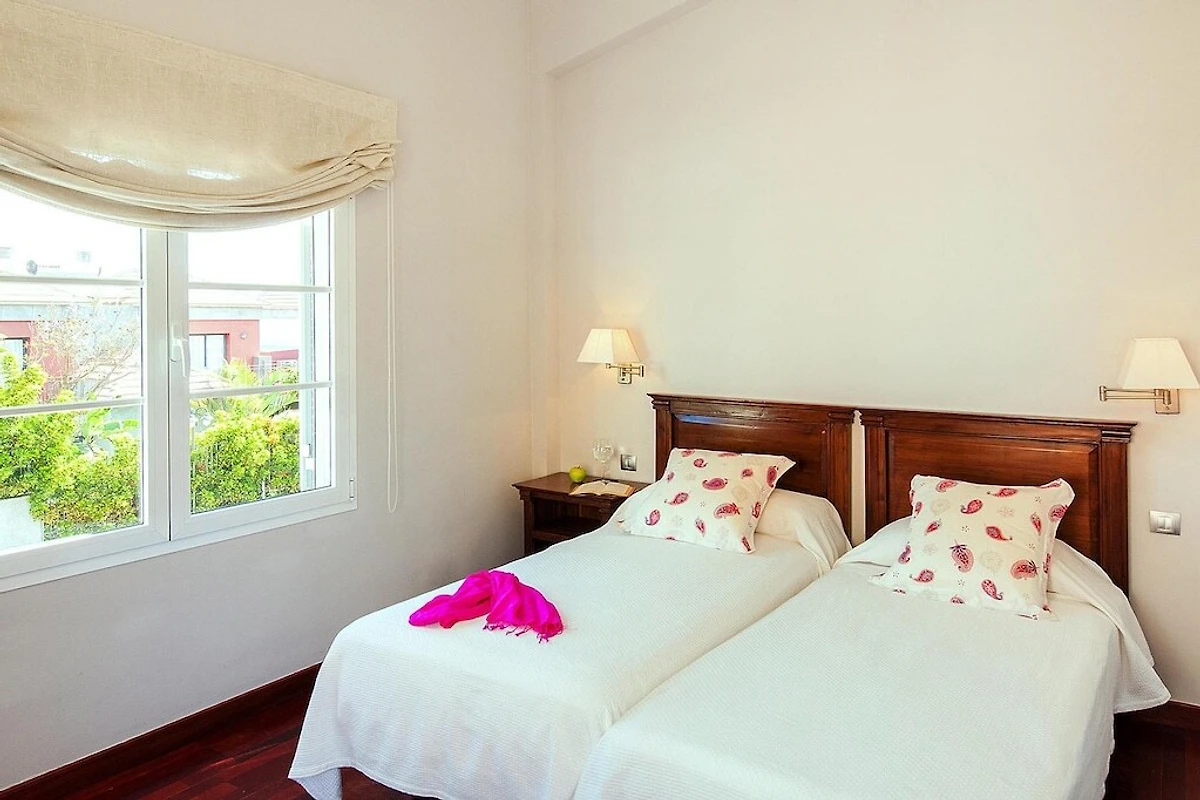 Het chique vakantiehuis met privé buitenzwembad biedt u veel comfort en is de ideale keuze voor een geslaagde vakantie met familie of vrienden. Begin de dag met een stevig ontbijt op uw terras en plan uw verdere dagelijkse routine: wat dacht u van een ontspannende dag aan het strand of aan uw eigen zwembad? Voor meer afwisseling is een tocht over het eiland of een bezoek aan Palmitos Park een aanrader. Als u graag wilt sporten, vindt u de beste omstandigheden in de kleine fitnessruimte in het souterrain. Kortom, uw vakantiehuis biedt alles voor de perfecte vakantie. De promenade begint bij de vuurtoren van Maspalomas en slingert ongeveer twee kilometer langs de kust naar de elegante badplaats Meloneras. De mooie wandeling voert je langs restaurants, cafés en bars. Langs de boulevard kun je lekker eten terwijl je geniet van het uitzicht op zee. Meloneras is het westelijke verlengstuk van de populaire badplaats Maspalomas en is ideaal voor golfers en rustzoekers.