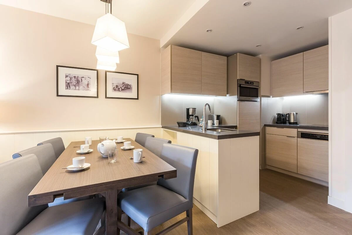 Kitchenette(kookplaat(keramisch), waterkoker, broodrooster, koffiezetapparaat, koffiezetapparaat(cups), afwasmachine, koelkast(+ vriesvak)), woon/eetkamer(2-pers. slaapbank, TV(satelliet)), slaapkamer(2x 1-pers. bed), slaapkamer(2-pers. bed), badkamer(ligbad, toilet, haardroger), badkamer(douche), toilet, sauna(gedeeld met andere gasten, tegen betaling), balkon of terras, parking, zwembad(gedeeld met andere gasten, binnen), zwembad(gedeeld met andere gasten, buiten, verwarmd), biljart(gedeeld met andere gasten), fitnesstoestellen(gedeeld met andere gasten)