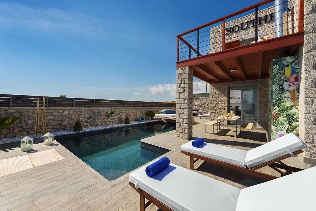 Deze villa is helemaal een vibe! Privézwembad, indrukwekkend uitzicht op zee en de zonsopgangen? Gewoon geweldig, Perfecte plek voor die esthetische foto's, De nabijgelegen taverne is ook een discreet juweeltje, met een super ontspannen sfeer en heerlijk Grieks eten, 10/10 zou ik aanraden