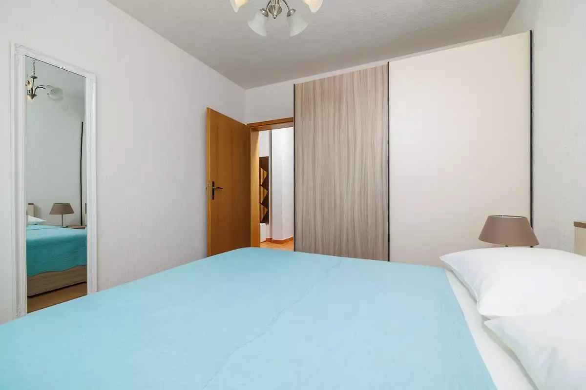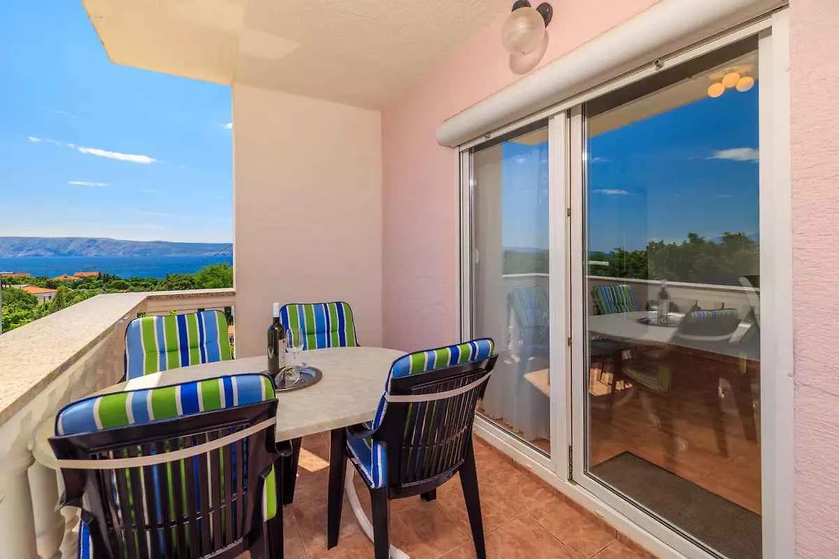 Ligging: Povile. De vakantiewoning ligt in een appartementenhuis en is modern ingericht. Het grondstuk is in een woongebied. Deze plaats is populair vanwege het uitzicht op de zee en het ligt op een rustige en zonnige plek. De toegangsweg naar het terrein gaat via een geasfalteerde zijstraat. Bij het huis is U 1 parkeerplaats voor een auto op het perceel beschikbaar. De dichtsbijzijnde winkels zijn op 500 m afstand, restaurant 2,5 km en centrum 2,5 km. Rijeka: vliegveld 30 km en station 45 km.