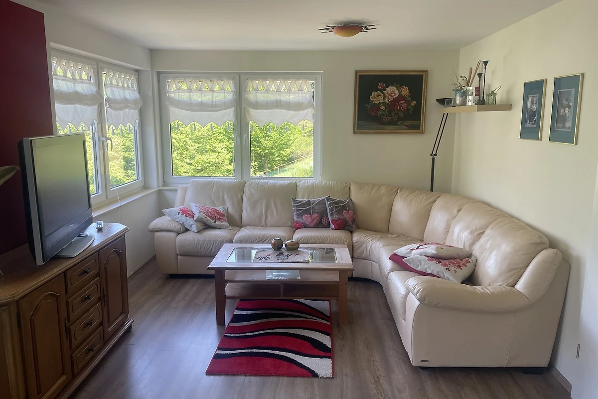 Ons vakantiehuis staat niet midden in het bos, maar aan de rand van het bos met een prachtig uitzicht op ons dorp. Omdat het op de zuidhelling ligt, heb je tot in de avonduren zon. U kunt het terras gebruiken om uit te rusten, te zonnen, te barbecueën, te eten, koffie te drinken of gewoon een oogje in het zeil te houden.