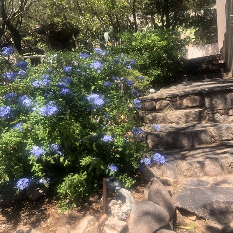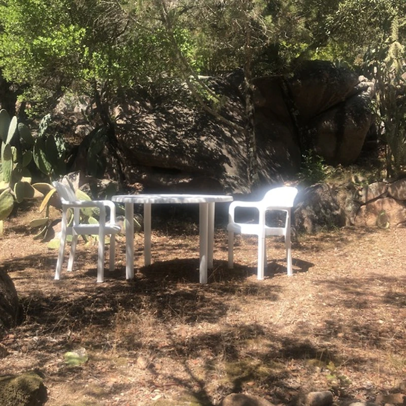 Het geheel is een goed onderhouden Corsicaanse tuin, met de grote rotsen die typisch zijn voor Corsica. Er is parkeergelegenheid voor één auto op het terrein