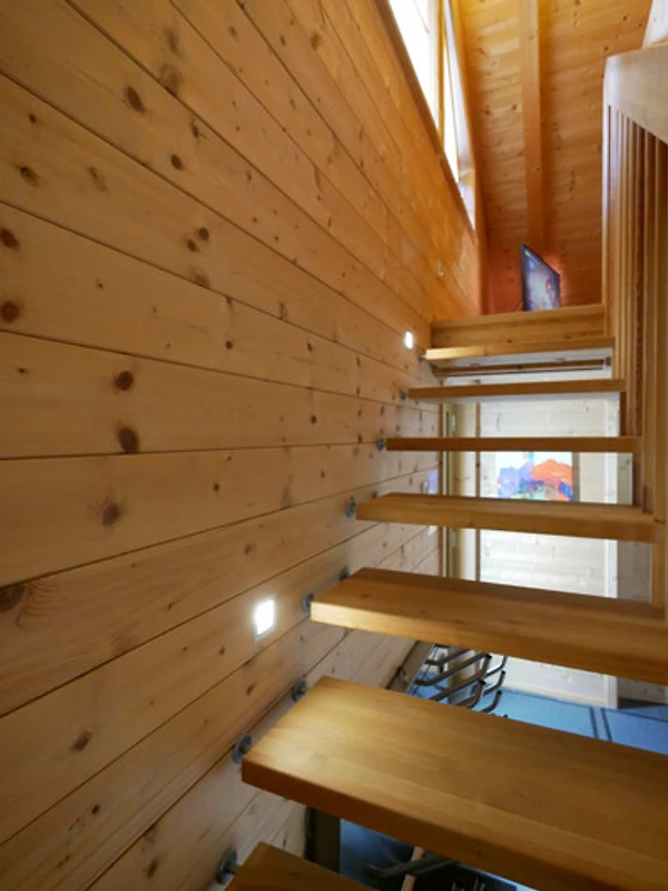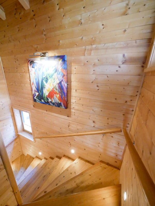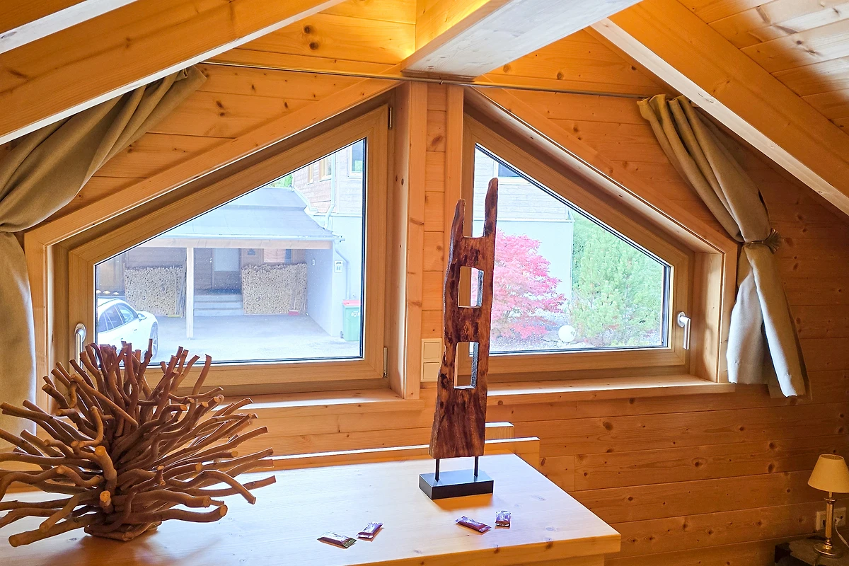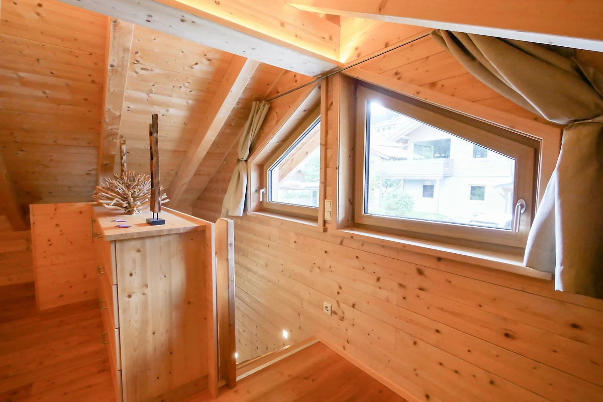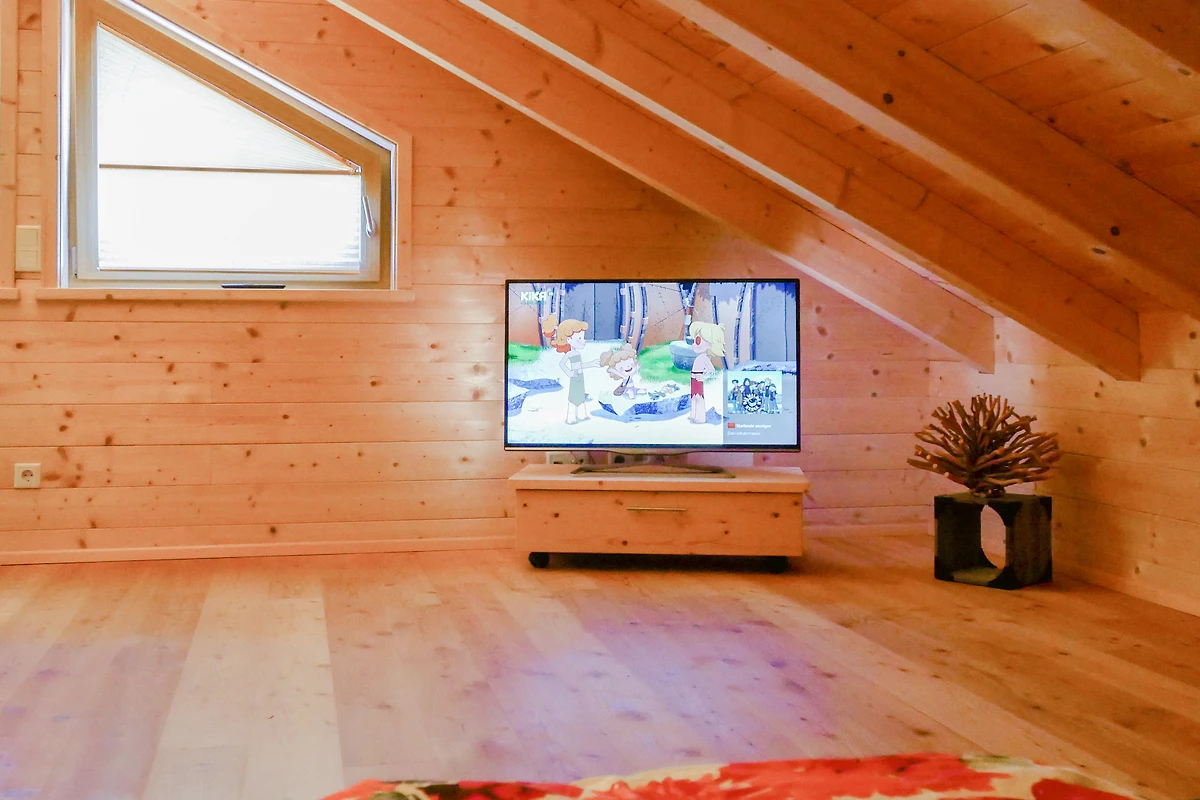 In de houtkachel kan een behaaglijk vuur worden gestookt. De grote LED Smart-TV biedt naast de (HD-)kabelprogramma’s ook de mogelijkheid om verbinding te maken met Netflix of via de Blu-ray speler dvd’s af te spelen. Het ruime slaapgedeelte op de zolder is comfortabel en veilig bereikbaar via een trap en biedt een slaapruimte met twee tweepersoonsbedden en een eigen LED Smart TV. Omdat de woonkamer door een glazen deur is gescheiden, kunnen de kinderen hier ook rustig hun eigen programma kijken en daarna slapen, terwijl de volwassenen nog gezellig samen zitten.