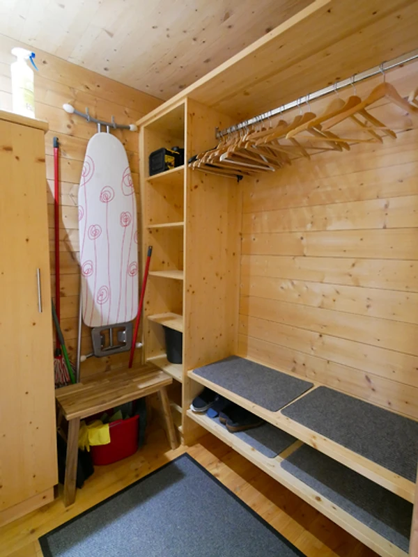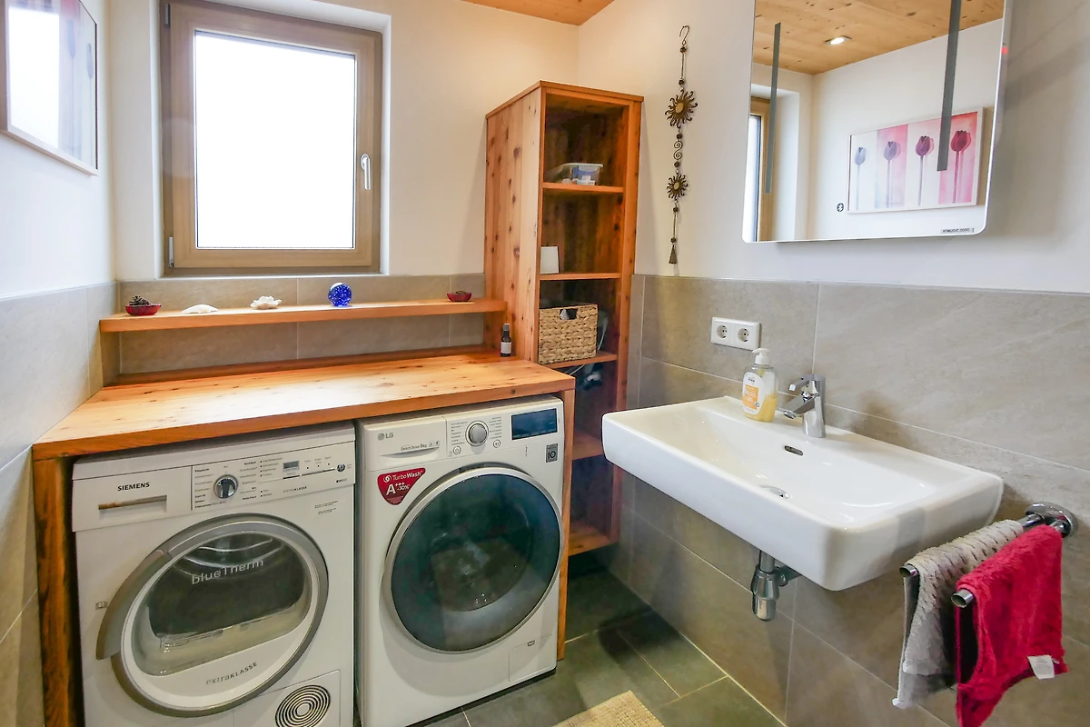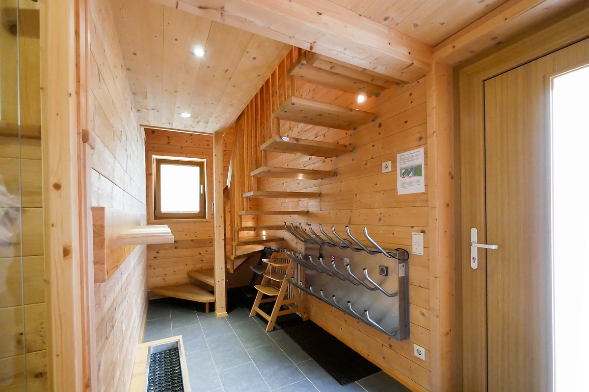 De begane grond betreedt men via de windvang in de entree met skiberging en skischoendroger. Helm, skibril en jas vinden plaats in de garderobe. In de douche-badkamer met wc bevindt zich een grote 9 kg wasmachine en een wasdroger.
