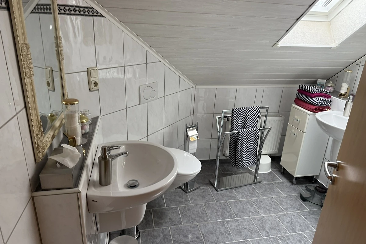 In het vakantieappartement "Aurora" vindt u een ruime douche, twee wastafels, toilet, badhanddoeken, handdoeken, föhn en douchegel. Het sanitaire gedeelte wordt gecompleteerd door een tweede toilet. De bedden zijn bij uw aankomst uiteraard opgemaakt. Twee slaapkamers (één tweepersoonsbed, twee eenpersoonsbedden) en de mogelijkheid om in de woonkamer van het appartement de slaapbank (1,60 m breed) te gebruiken, zijn aanwezig.