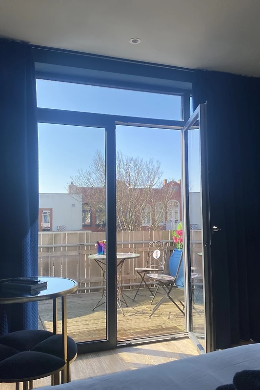 25 m2 , eigen badkamer met regendouche en toilet , Phillips ambilight televisie, balkon, minibar