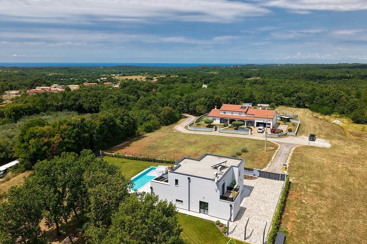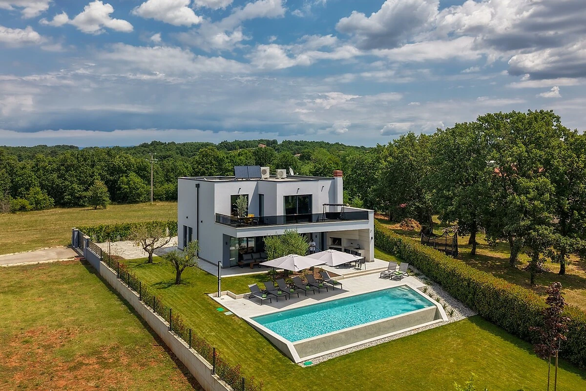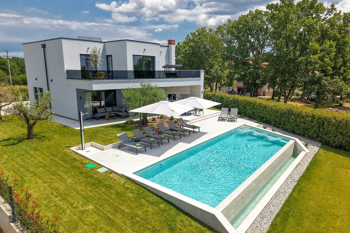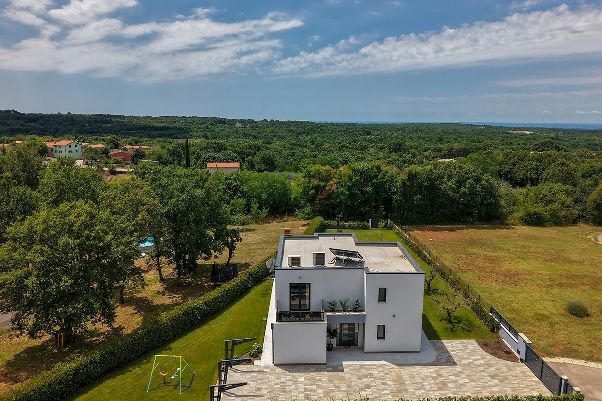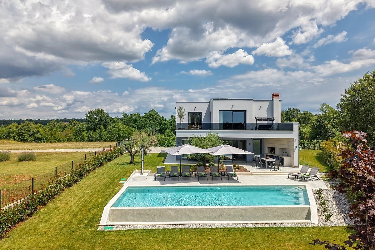 De moderne en exclusief uitgeruste Villa Superiore bevindt zich in het rustige dorp Jakovici bij Tinjan, midden in het groene hart van Istrië. Deze nieuwgebouwde vakantievilla ligt op een volledig omheind perceel in absolute alleenligging en biedt maximale privacy en comfort. De villa beschikt over drie luxueuze, ruime slaapkamers, een moderne, volledig uitgeruste keuken en een elegante woon- en eetkamer met directe toegang tot het terras, de tuin en het infinity-zwembad. Een bijzonder hoogtepunt is de overdekte buitenkeuken – perfect voor gezellige grillavonden onder de sterrenhemel. Dankzij de afgelegen ligging geniet u van absolute rust, maar bent u toch binnen korte tijd bij de mooiste stranden, toprestaurants en wijnroutes van Istrië. Ideaal voor families, stellen of vrienden die een onvergetelijke vakantie in een luxueuze sfeer willen doorbrengen.