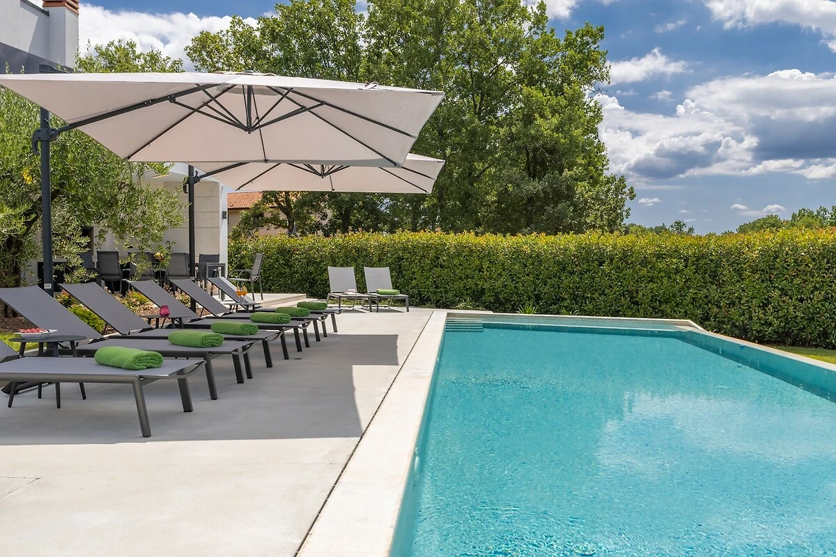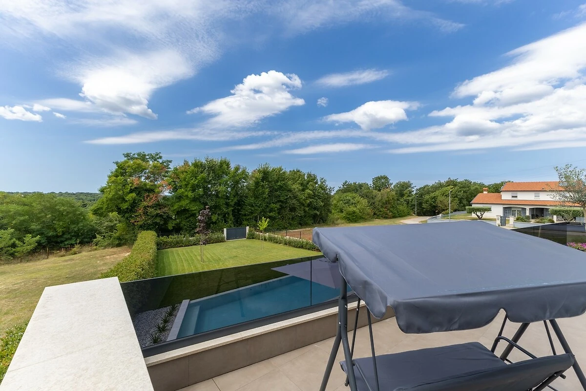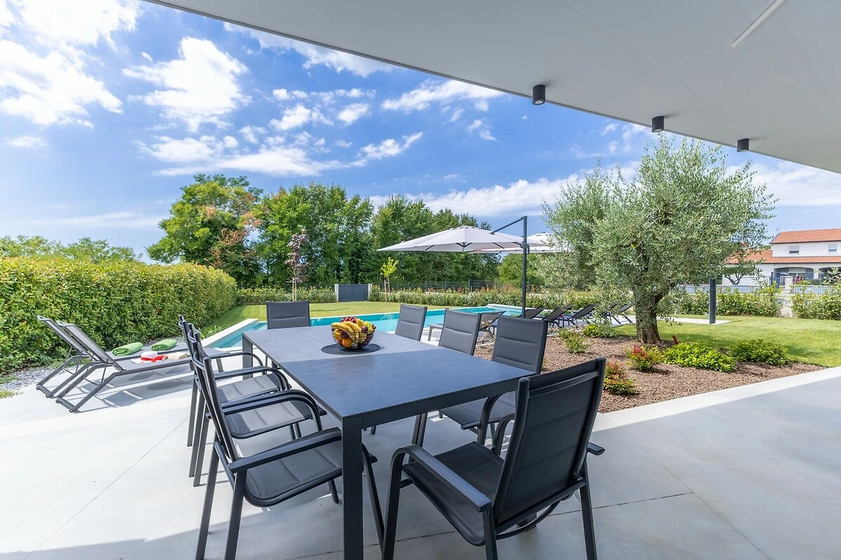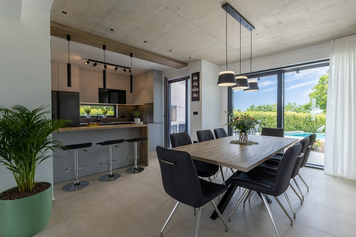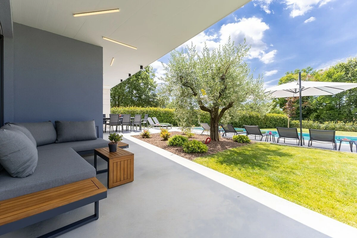 De moderne en exclusief uitgeruste Villa Superiore bevindt zich in het rustige dorp Jakovici bij Tinjan, midden in het groene hart van Istrië. Deze nieuwgebouwde vakantievilla ligt op een volledig omheind perceel in absolute alleenligging en biedt maximale privacy en comfort. De villa beschikt over drie luxueuze, ruime slaapkamers, een moderne, volledig uitgeruste keuken en een elegante woon- en eetkamer met directe toegang tot het terras, de tuin en het infinity-zwembad. Een bijzonder hoogtepunt is de overdekte buitenkeuken – perfect voor gezellige grillavonden onder de sterrenhemel. Dankzij de afgelegen ligging geniet u van absolute rust, maar bent u toch binnen korte tijd bij de mooiste stranden, toprestaurants en wijnroutes van Istrië. Ideaal voor families, stellen of vrienden die een onvergetelijke vakantie in een luxueuze sfeer willen doorbrengen.
