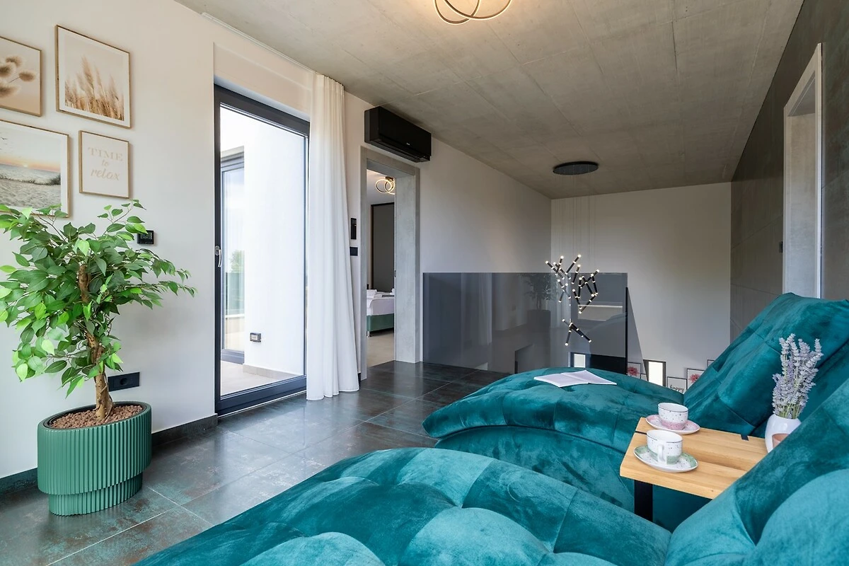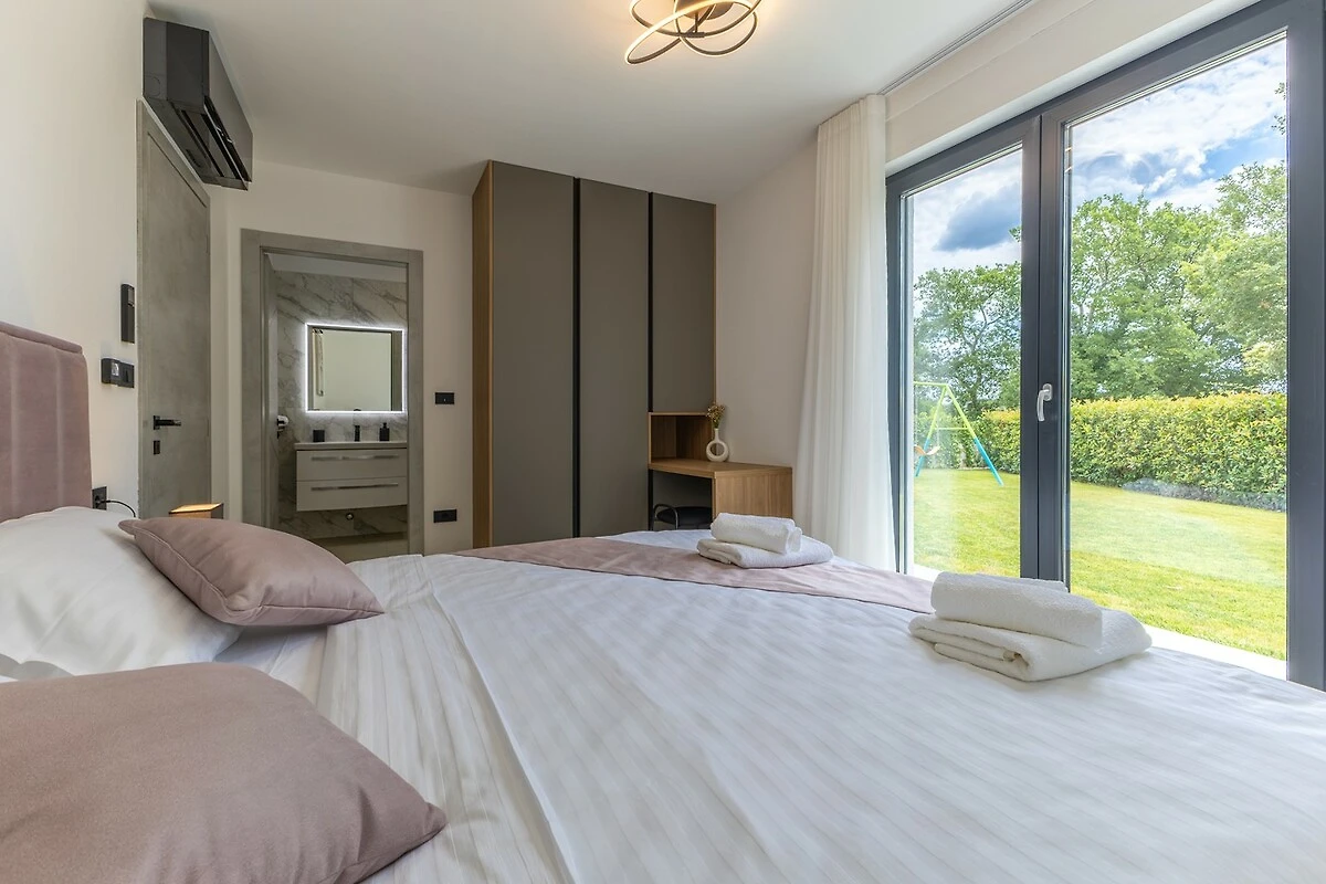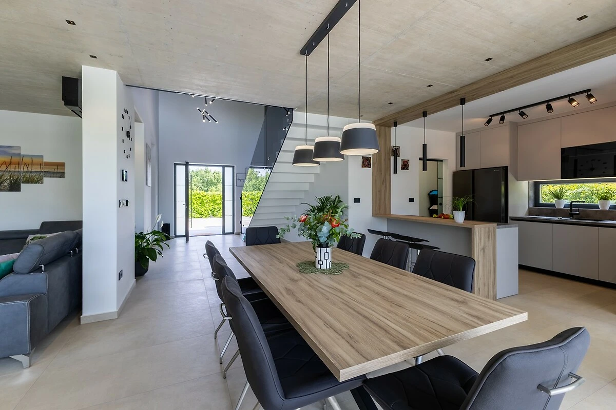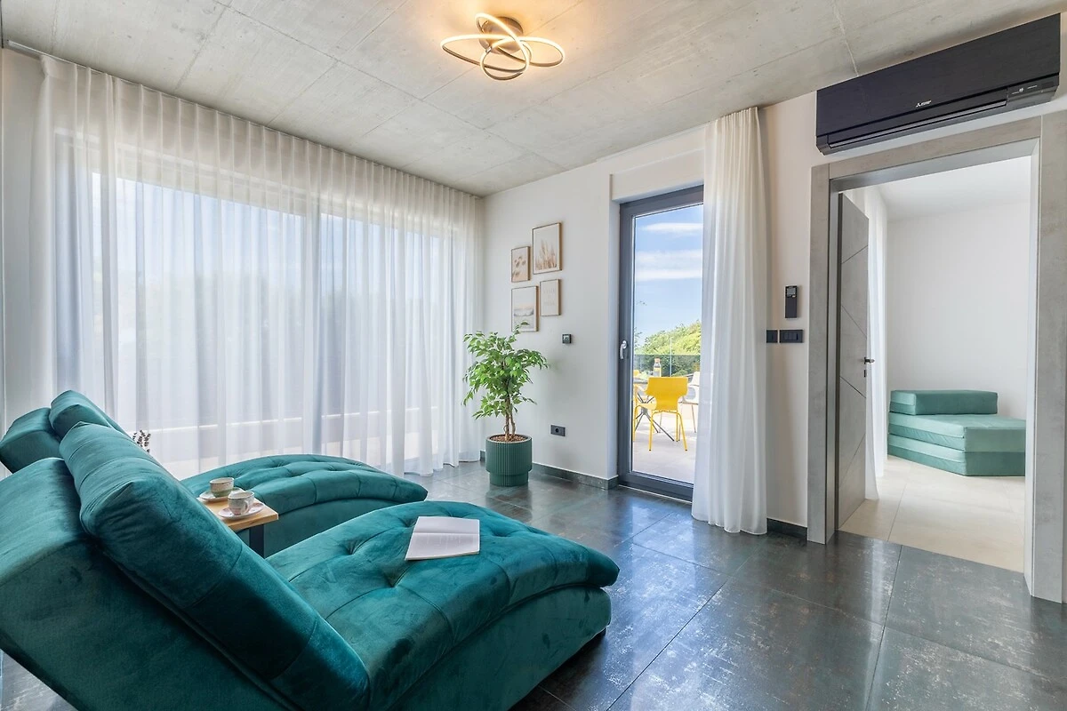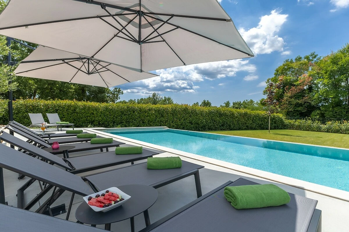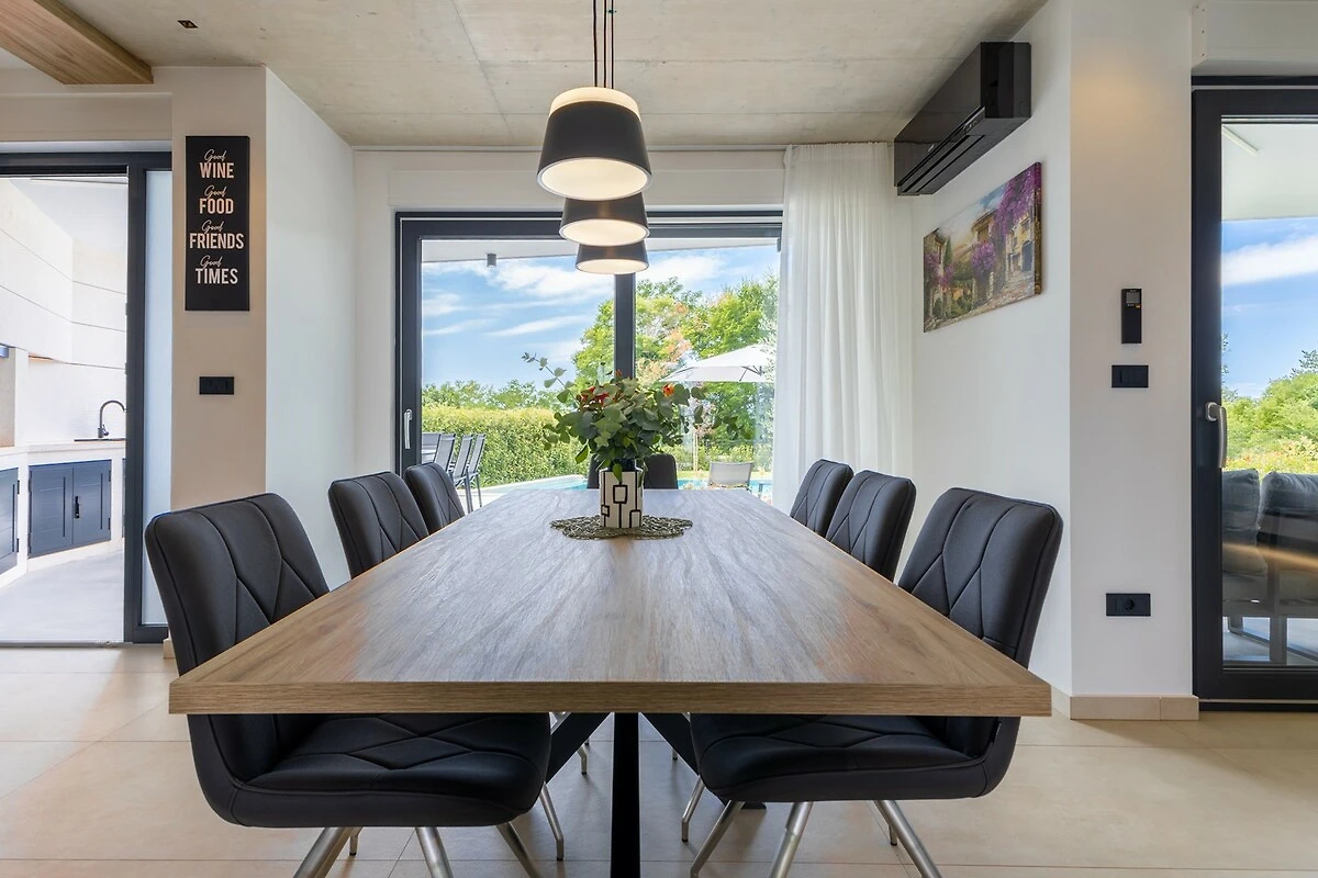 De moderne en exclusief uitgeruste Villa Superiore bevindt zich in het rustige dorp Jakovici bij Tinjan, midden in het groene hart van Istrië. Deze nieuwgebouwde vakantievilla ligt op een volledig omheind perceel in absolute alleenligging en biedt maximale privacy en comfort. De villa beschikt over drie luxueuze, ruime slaapkamers, een moderne, volledig uitgeruste keuken en een elegante woon- en eetkamer met directe toegang tot het terras, de tuin en het infinity-zwembad. Een bijzonder hoogtepunt is de overdekte buitenkeuken – perfect voor gezellige grillavonden onder de sterrenhemel. Dankzij de afgelegen ligging geniet u van absolute rust, maar bent u toch binnen korte tijd bij de mooiste stranden, toprestaurants en wijnroutes van Istrië. Ideaal voor families, stellen of vrienden die een onvergetelijke vakantie in een luxueuze sfeer willen doorbrengen.