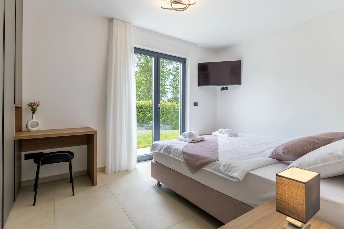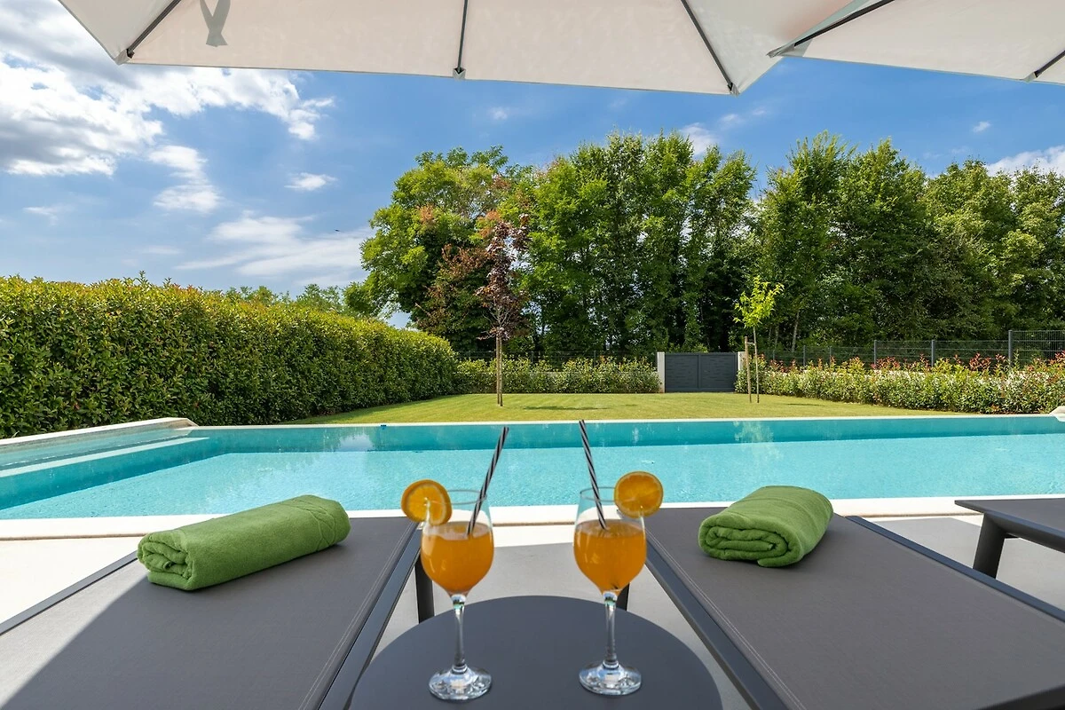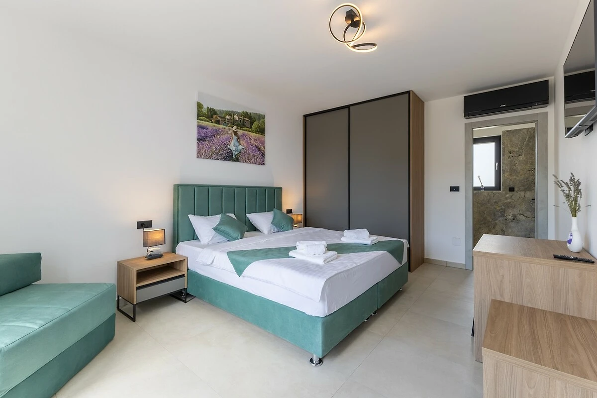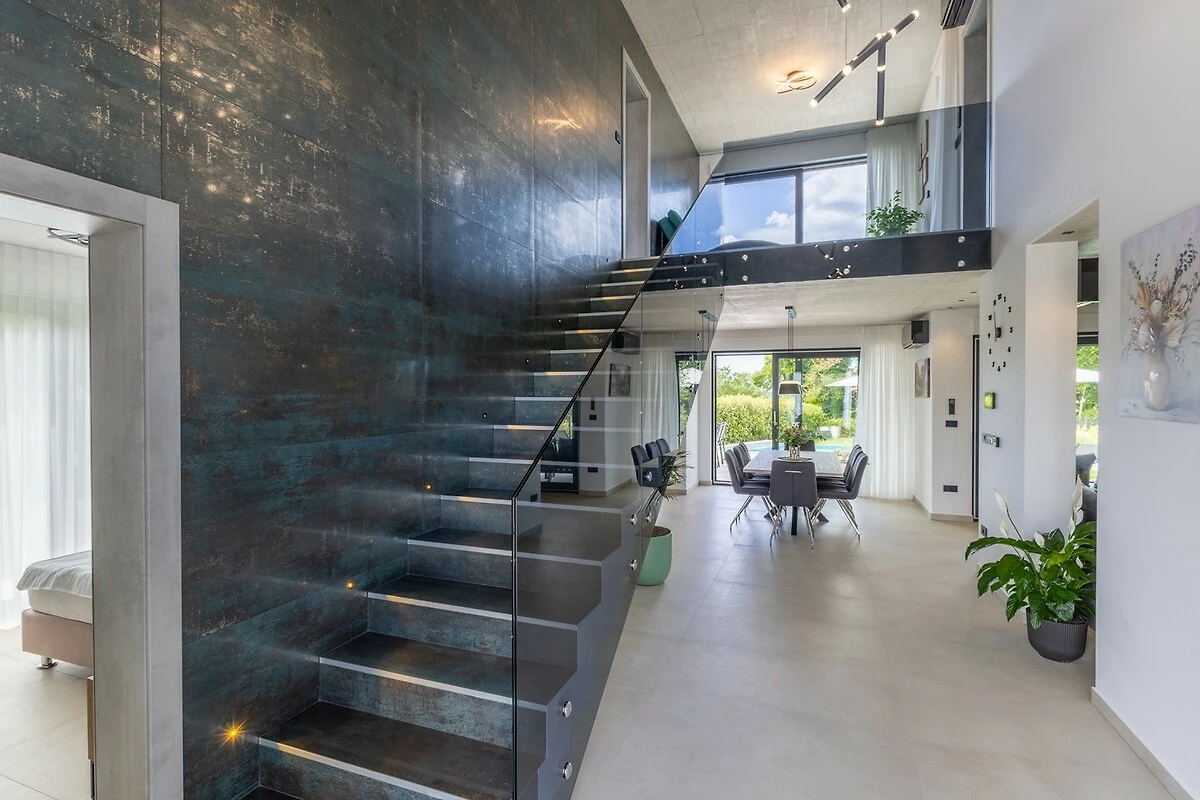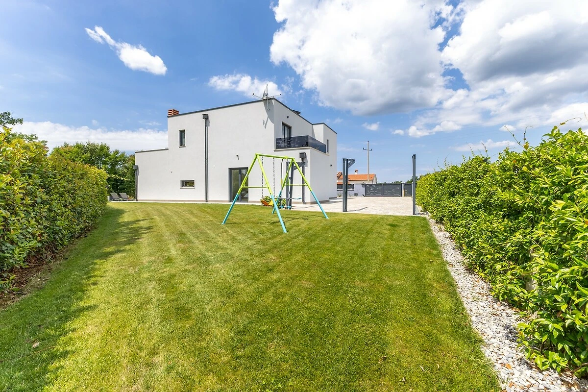 De moderne en exclusief uitgeruste Villa Superiore bevindt zich in het rustige dorp Jakovici bij Tinjan, midden in het groene hart van Istrië. Deze nieuwgebouwde vakantievilla ligt op een volledig omheind perceel in absolute alleenligging en biedt maximale privacy en comfort. De villa beschikt over drie luxueuze, ruime slaapkamers, een moderne, volledig uitgeruste keuken en een elegante woon- en eetkamer met directe toegang tot het terras, de tuin en het infinity-zwembad. Een bijzonder hoogtepunt is de overdekte buitenkeuken – perfect voor gezellige grillavonden onder de sterrenhemel. Dankzij de afgelegen ligging geniet u van absolute rust, maar bent u toch binnen korte tijd bij de mooiste stranden, toprestaurants en wijnroutes van Istrië. Ideaal voor families, stellen of vrienden die een onvergetelijke vakantie in een luxueuze sfeer willen doorbrengen.
