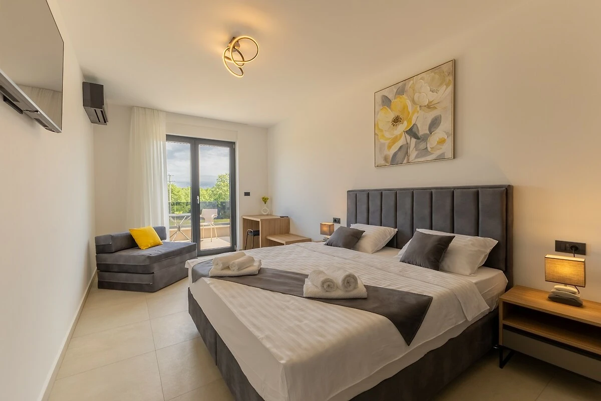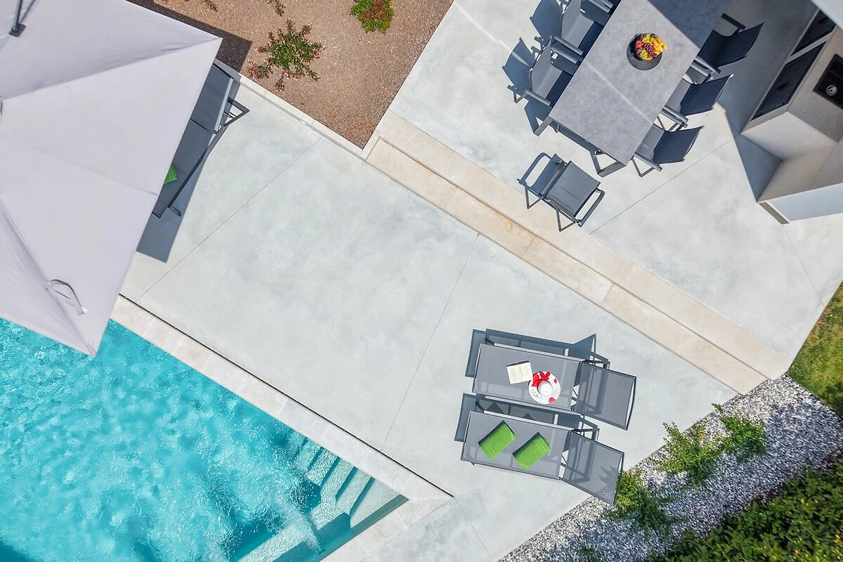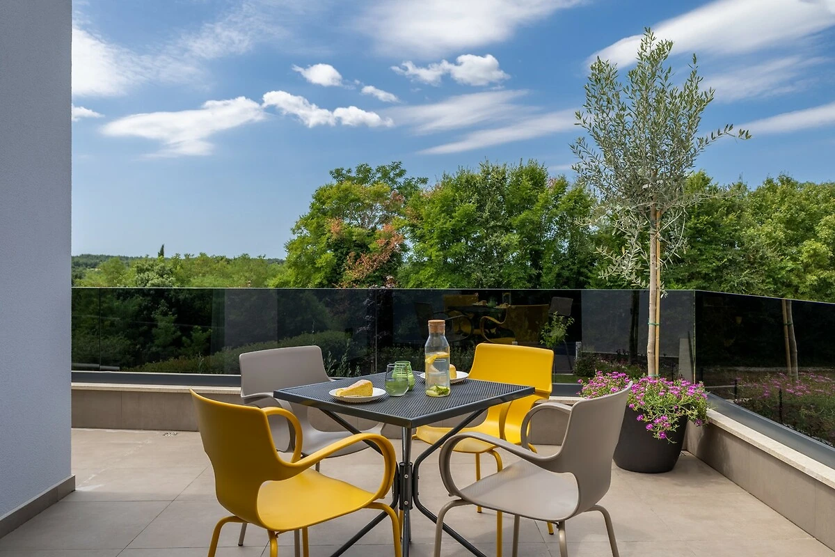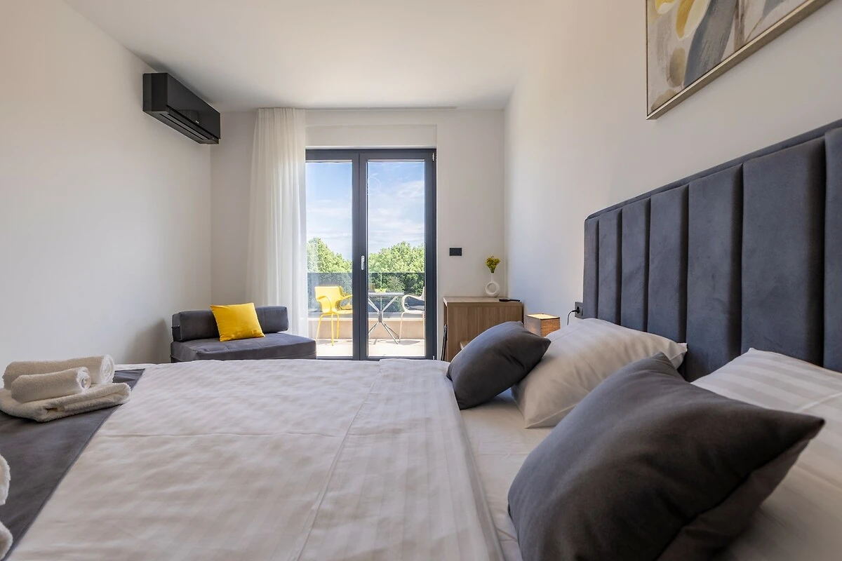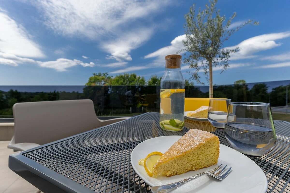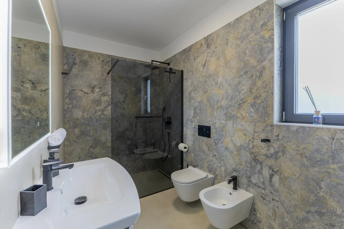De moderne en exclusief uitgeruste Villa Superiore bevindt zich in het rustige dorp Jakovici bij Tinjan, midden in het groene hart van Istrië. Deze nieuwgebouwde vakantievilla ligt op een volledig omheind perceel in absolute alleenligging en biedt maximale privacy en comfort. De villa beschikt over drie luxueuze, ruime slaapkamers, een moderne, volledig uitgeruste keuken en een elegante woon- en eetkamer met directe toegang tot het terras, de tuin en het infinity-zwembad. Een bijzonder hoogtepunt is de overdekte buitenkeuken – perfect voor gezellige grillavonden onder de sterrenhemel. Dankzij de afgelegen ligging geniet u van absolute rust, maar bent u toch binnen korte tijd bij de mooiste stranden, toprestaurants en wijnroutes van Istrië. Ideaal voor families, stellen of vrienden die een onvergetelijke vakantie in een luxueuze sfeer willen doorbrengen.