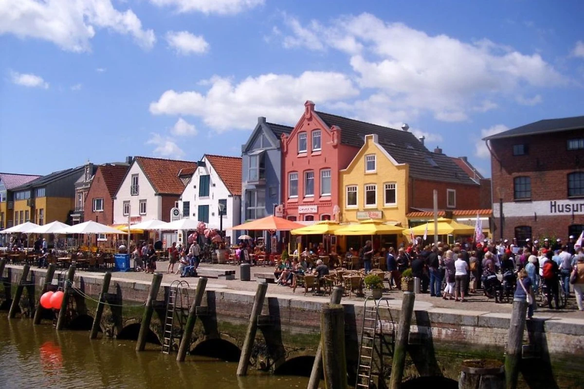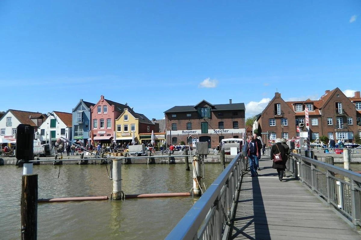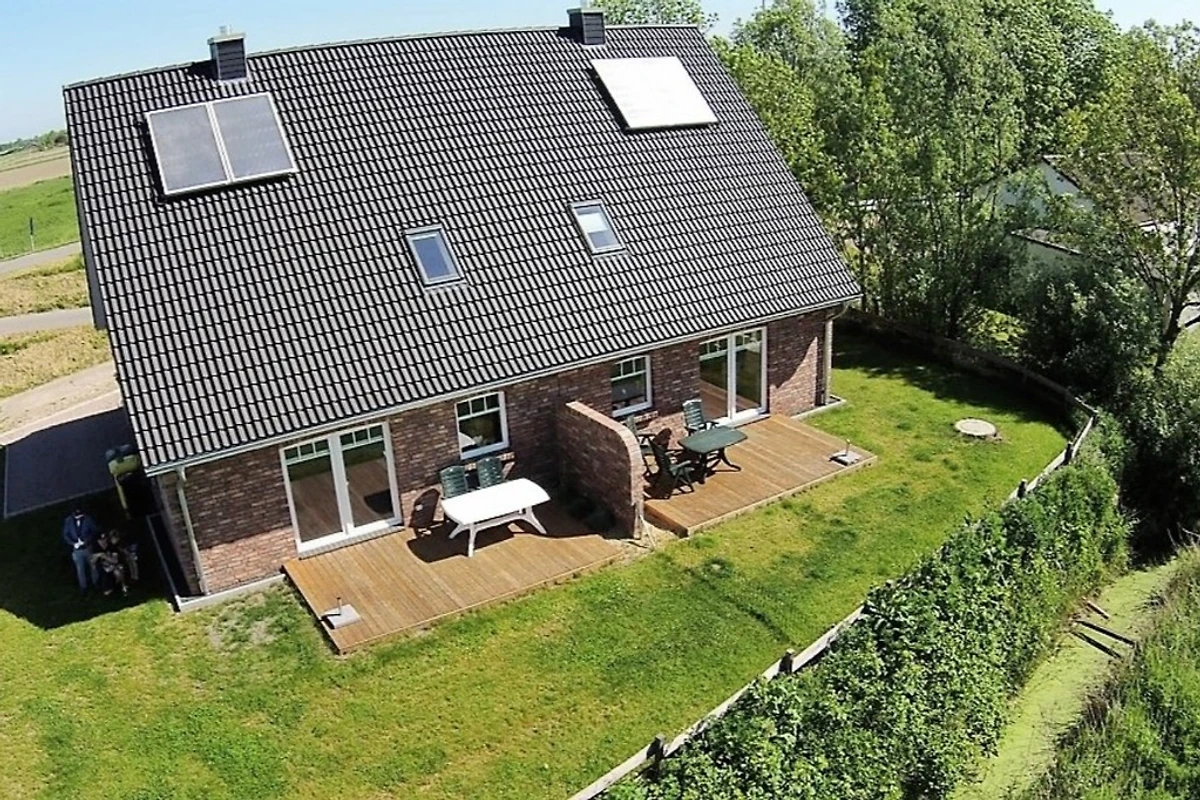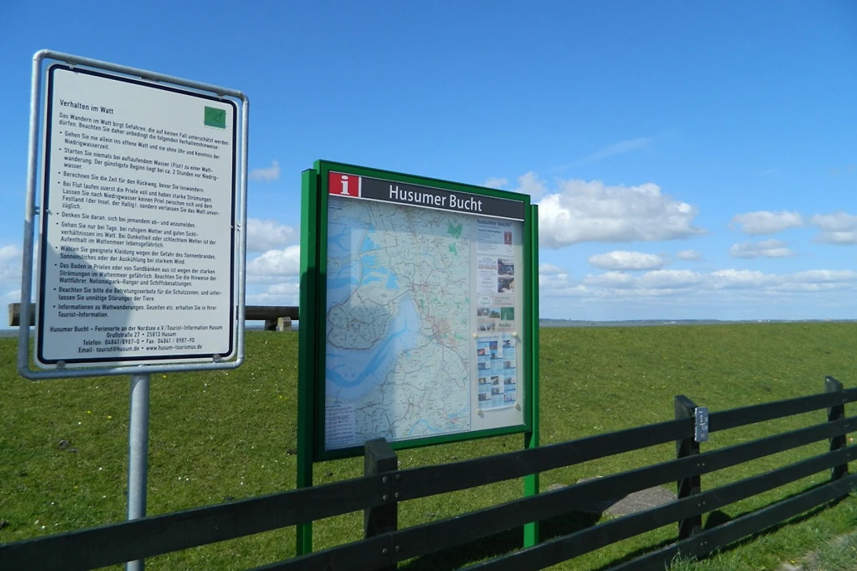Noord-Friesland, Sleeswijk-Holstein - land van weidse horizonten. Uw vakantiehuis ligt in een doodlopende straat. Wandelingen direct vanaf het huis langs de dijk. Husum ligt op ongeveer 6 km afstand en biedt maritieme flair. Tönning met de mooiste haven van de westkust is gemakkelijk te bereiken. De grootste zandbak, het strand van St. Peter-Ording is in ca. 25 km te bereiken. Ook de nabijgelegen Eiderschans is de moeite waard en het direct aangrenzende natuurgebied Katinger Watt nodigt uit tot het verkennen van de natuur.