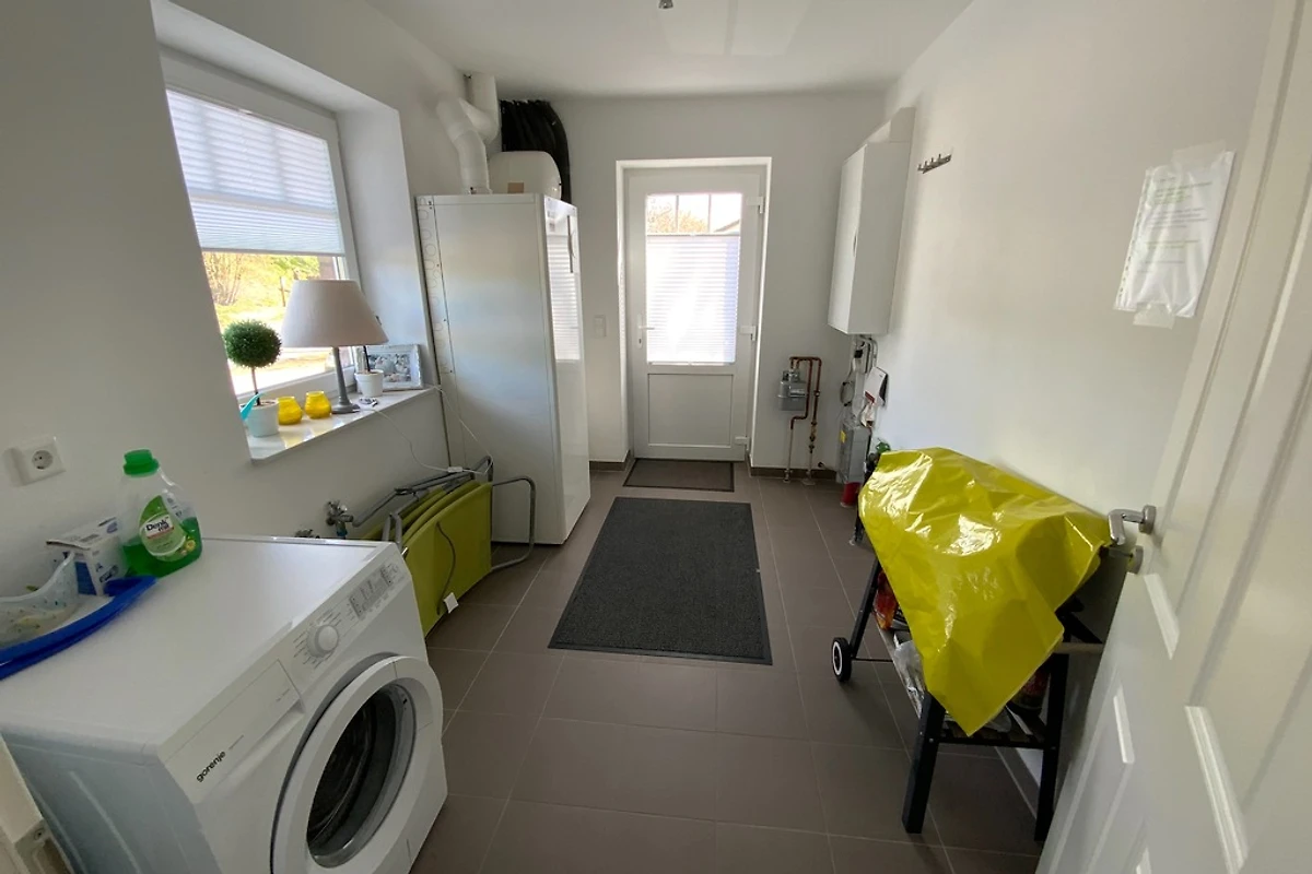 Op de begane grond is er een grote bijkeuken met wasmachine. Een badkamer, WC en een douche op de begane grond. Opslagruimte.