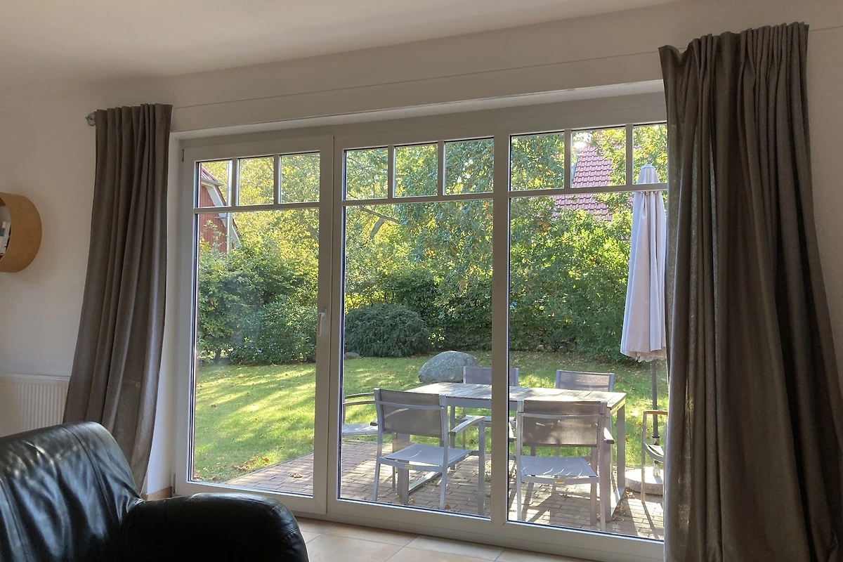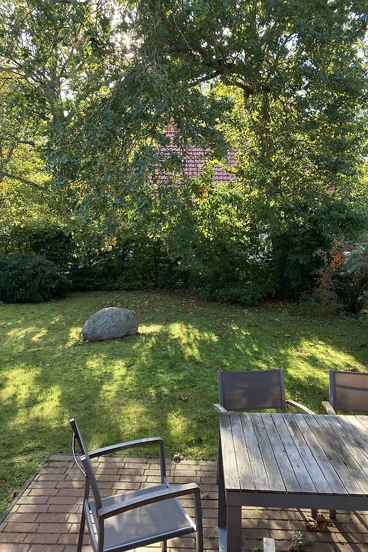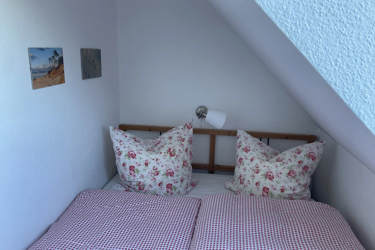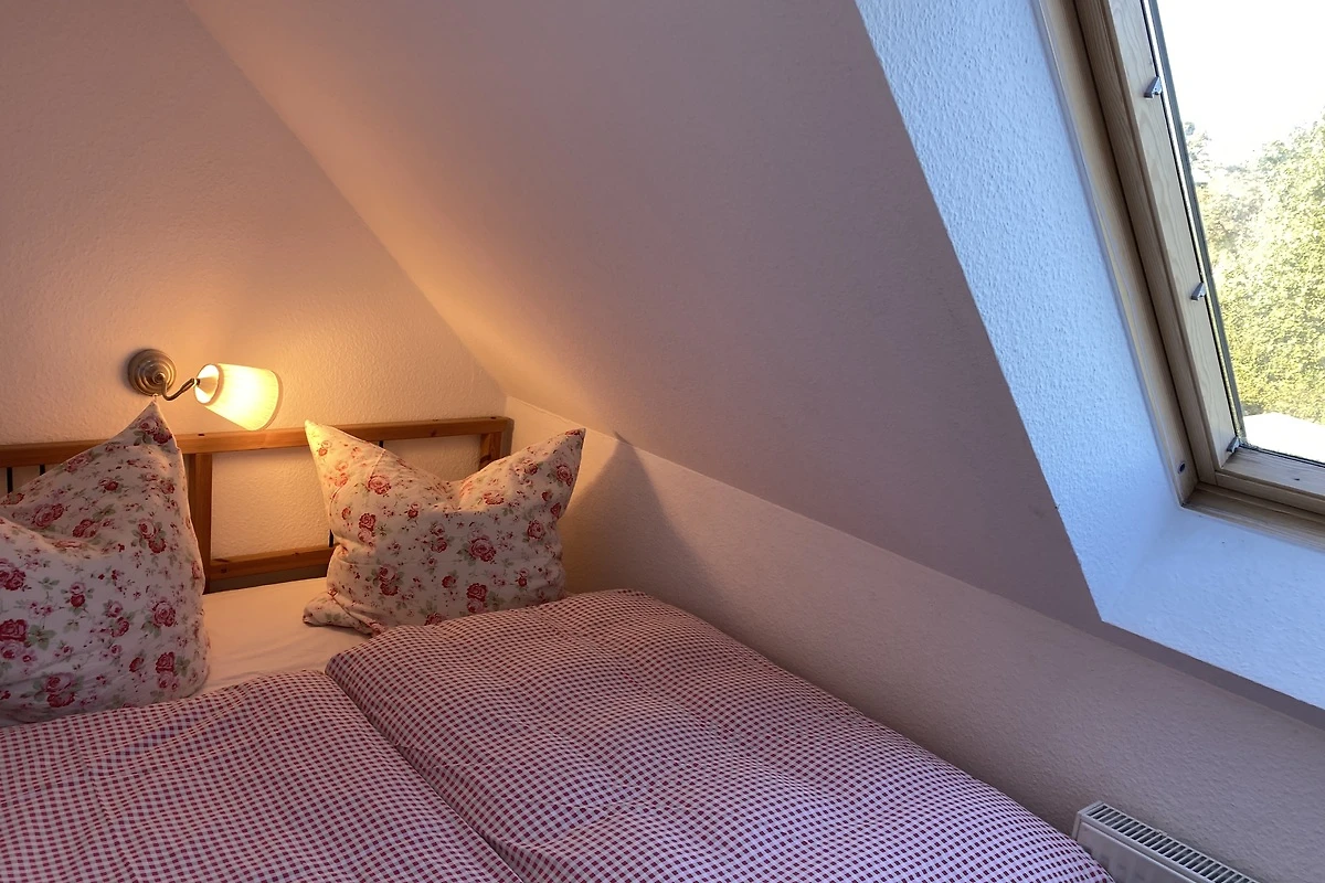 Het vakantiehuis (halfvrijstaand huis) ligt direct aan het Darß-bos (nationaal park). Op de begane grond is er een gezellige woonkamer met 2 leren banken, een houtkachel en een TV (32" flatscreen / Astra digital). Geïntegreerd in de woonkamer is een eethoek met een grote massief beuken tafel en een moderne ingerichte keuken met vaatwasser, fornuis met keramische kookplaat, afzuigkap, koelkast, broodrooster, waterkoker en vele andere apparaten. Op de bovenverdieping zijn twee grote en een kleine slaapkamer ingericht, elk met een tweepersoonsbed. Er is een badkamer met douche, wastafel en WC op elke verdieping. Aan de zuidkant van het huis is er een terras afgeschermd van de buren. Een tweede zonneterras bevindt zich op het groene gedeelte van het perceel van 400 m² tuin. Twee parkeerplaatsen en fietsenstallingen zijn direct bij het huis beschikbaar.