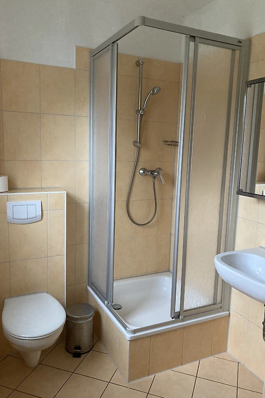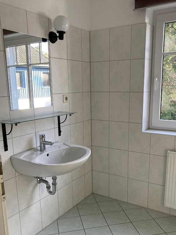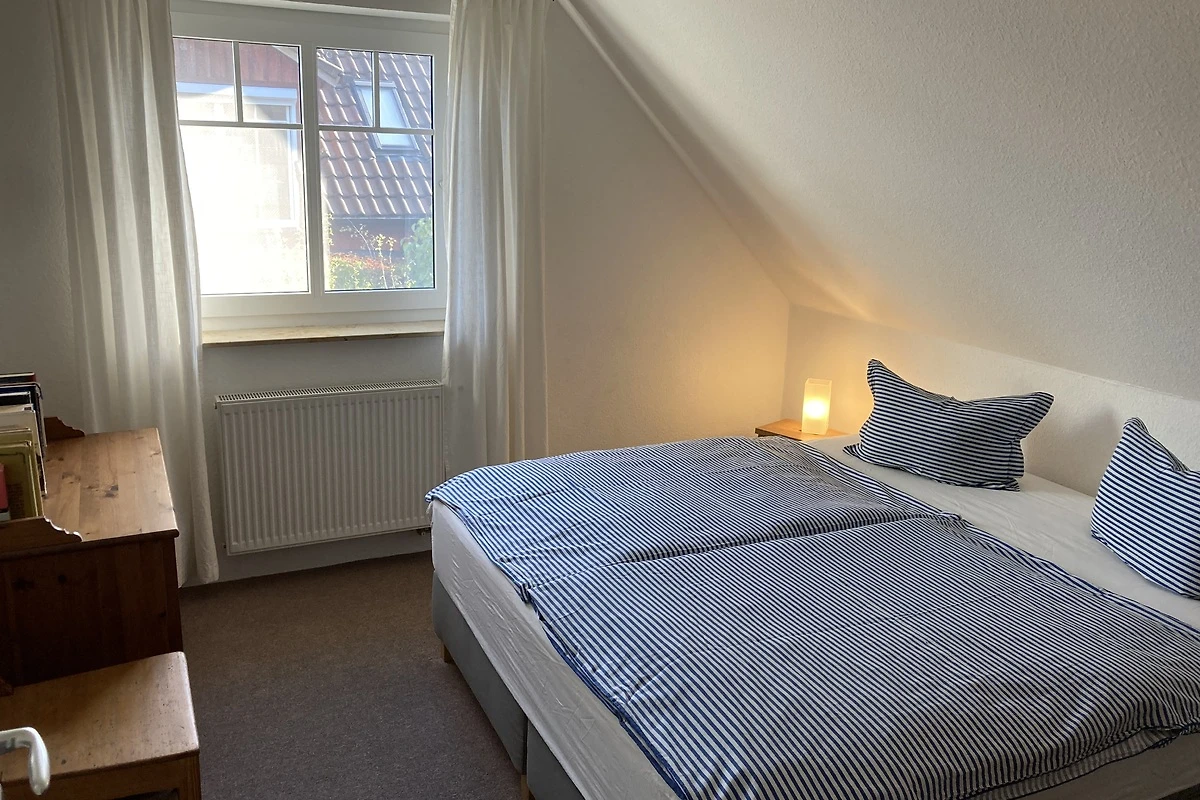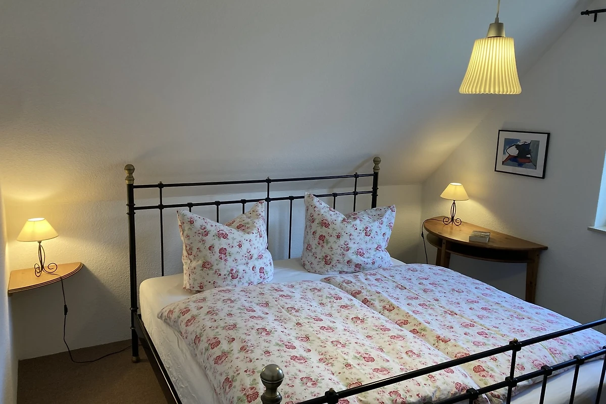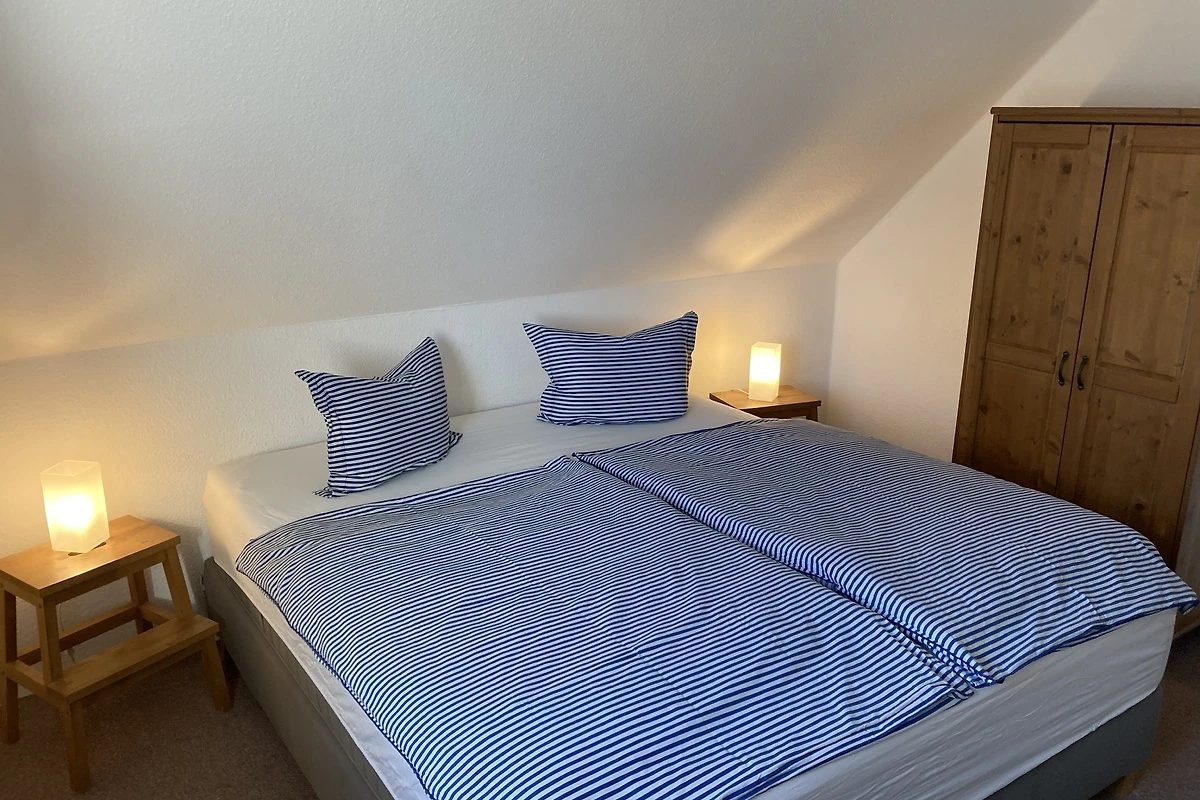 Het vakantiehuis (halfvrijstaand huis) ligt direct aan het Darß-bos (nationaal park). Op de begane grond is er een gezellige woonkamer met 2 leren banken, een houtkachel en een TV (32" flatscreen / Astra digital). Geïntegreerd in de woonkamer is een eethoek met een grote massief beuken tafel en een moderne ingerichte keuken met vaatwasser, fornuis met keramische kookplaat, afzuigkap, koelkast, broodrooster, waterkoker en vele andere apparaten. Op de bovenverdieping zijn twee grote en een kleine slaapkamer ingericht, elk met een tweepersoonsbed. Er is een badkamer met douche, wastafel en WC op elke verdieping. Aan de zuidkant van het huis is er een terras afgeschermd van de buren. Een tweede zonneterras bevindt zich op het groene gedeelte van het perceel van 400 m² tuin. Twee parkeerplaatsen en fietsenstallingen zijn direct bij het huis beschikbaar.