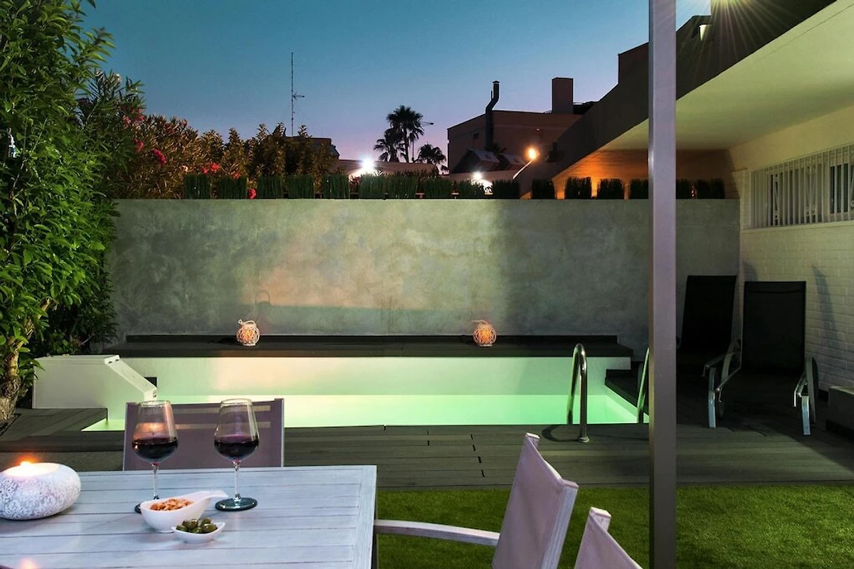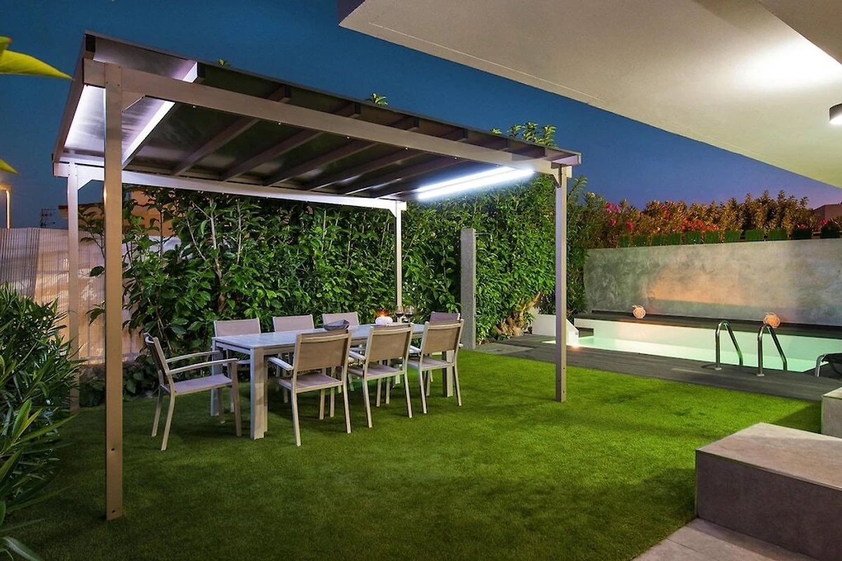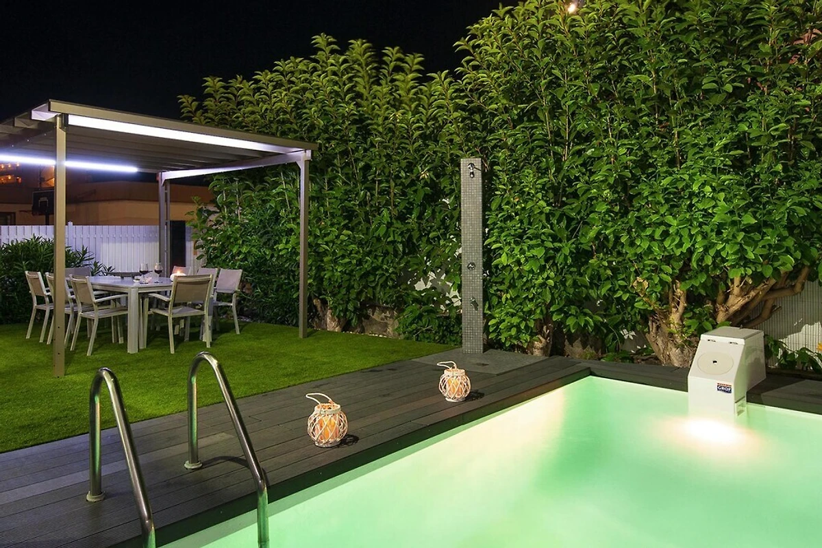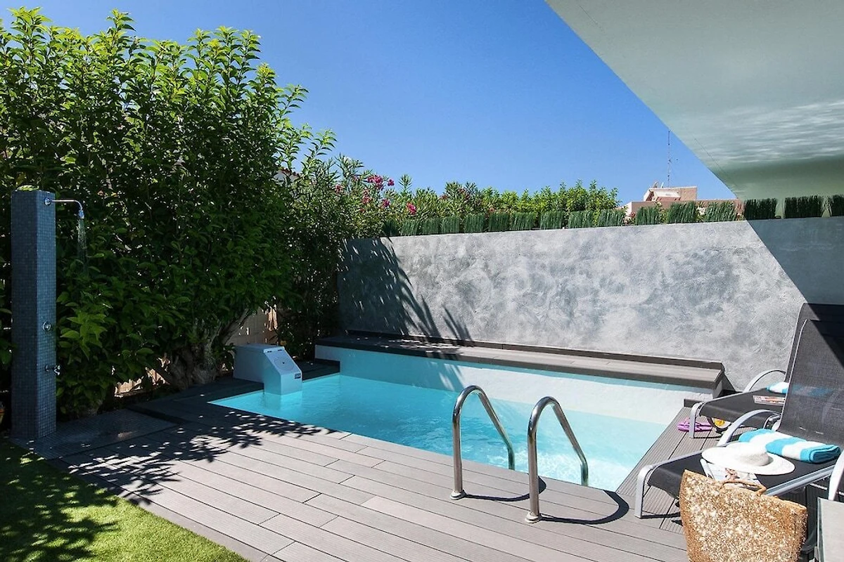 douche(buiten), wasmachine, airconditioning, terras, tuin, tuinmeubilair, ligbedden, parking, zwembad(privé), kinderstoel, baby crib(free)