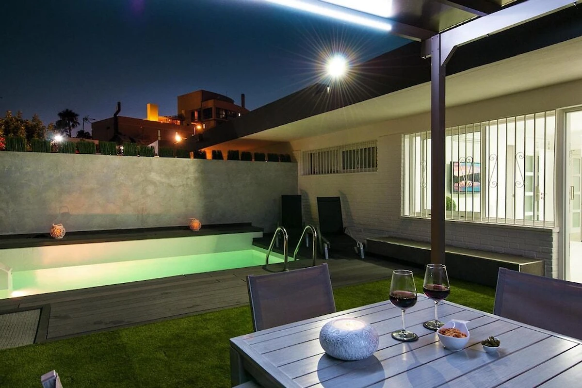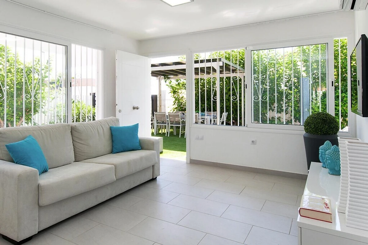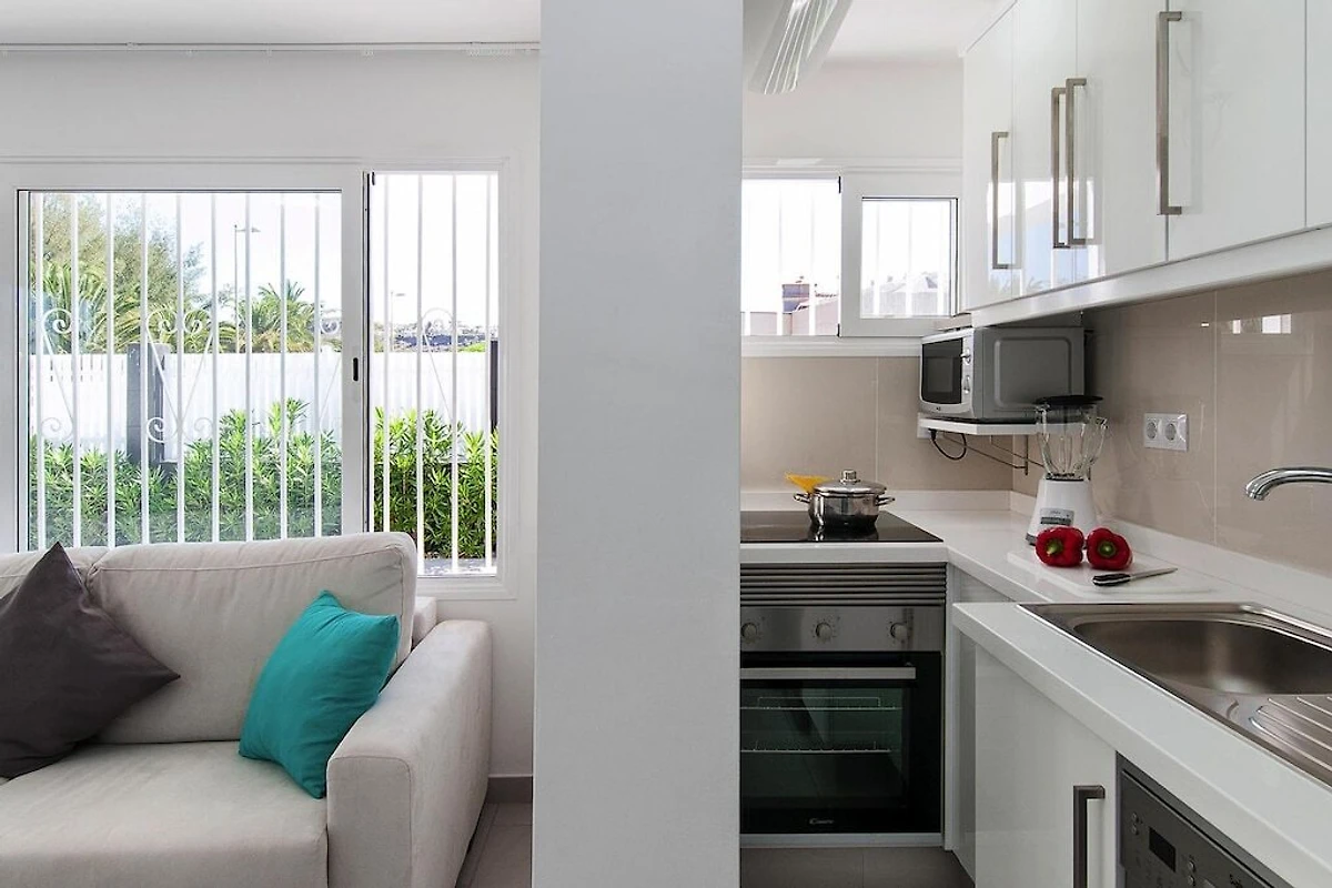 Strandvakantiegangers komen hier aan hun trekken, want de lichte en vriendelijk ingerichte bungalow heeft een eigen buitenzwembad en ligt op slechts ongeveer 700 meter van het prachtige zandstrand van San Agustín. Breng mooie dagen door aan zee en geniet daarna van ontspannende avonden op het privacy-beschermde terras. Ook in de gerenoveerde bungalow voel je je op je gemak, die je veel comfort biedt met de nieuwste entertainmentmogelijkheden in de woonkamer, een moderne keuken en twee badkamers. Het strand van San Agustín is zo'n 670 meter lang, licht glooiend en bovendien goed beschermd tegen de golven, zodat je hier optimaal kunt snorkelen en duiken. Langs de boulevard Paseo Costa Canaria kunt u heerlijk wandelen naar het hoofdstrand van Playa del Inglés, dat op ongeveer drieënhalve kilometer afstand ligt. Geniet van het geweldige uitzicht op de Atlantische Oceaan. U vindt ook enkele uitstekende visrestaurants langs de promenade, evenals een selectie van cafés, bars en winkels.