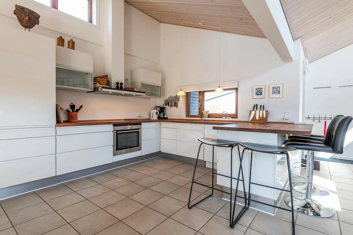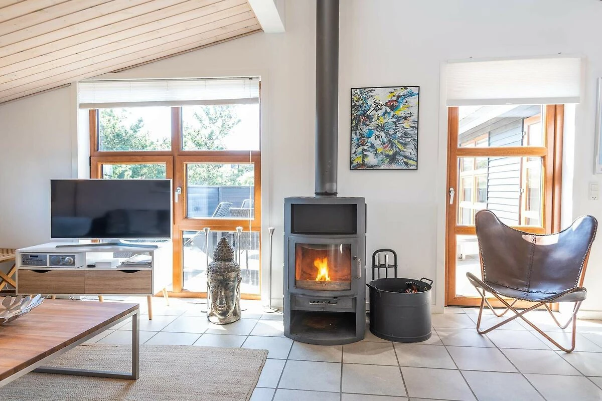 WISSELDAAG VRIJDAG - Architectontworpen vakantiehuis met spannende details, zoals bijzondere lichtinval, wasruimte en gezellige hoekjes rondom het vakantiehuis. Bijzonder ingericht met alle voorzieningen. Een grote keuken met praktische klinkervloer en vloerverwarming - een natuurlijke verzamelplaats voor het hele gezin tijdens het koken. Vanuit de charmante woonkamer, uiteraard met houtkachel en meerdere uitgangen naar de terrassen, is er een prachtig uitzicht op de natuur, die in deze omgeving heuvelachtig is. Het vakantiehuis heeft 2 mooie badkamers, waarvan er één is uitgerust met een sauna en een badkuip. Strand en winkelmogelijkheden zijn op korte afstand. Een echt mooi, doordacht vakantiehuis in Rindby. Mooie vakantiehuizen op Fanø aan de Noordzee in Denemarken! Eindschoonmaak is bij de prijs inbegrepen!