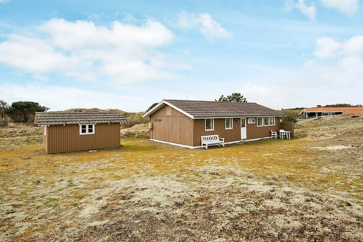 Vakantiehuis nabij de kust, gelegen op een groot natuurperceel in een rustige doodlopende straat. In het huis een open, lichte keuken-/woonruimte met raamoppervlakken in drie windrichtingen. Daarnaast zijn er twee slaapkamers, één met een 160 cm breed tweepersoonsbed, de tweede met een eenpersoonsbed. Richting het zuidoosten zijn er geen buren, alleen uitzicht op de omliggende natuur met herten, konijnen en fazanten. Geniet op het westterras van de lange, lichte zomeravonden en zonsondergangen! Geen verhuur aan jeugdgroepen gewenst!