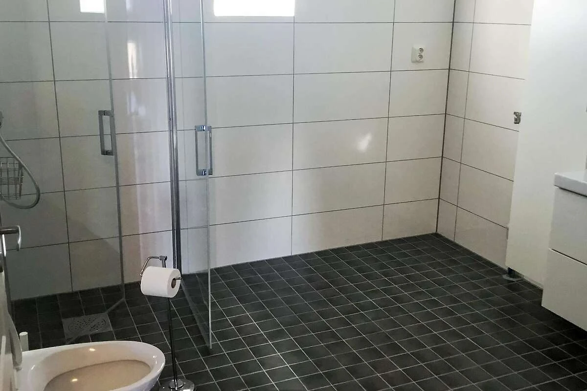 Open keuken(fornuis(elektrisch), afzuigkap, koffiezetapparaat, magnetron, afwasmachine, vriezer(200-249L), koel-/vriescombinatie, wasmachine, kinderstoel), woon/slaapkamer(TV(satelliet, duitse zender(s))), slaapkamer(7 m2)(2x 1-pers. bed, kinderbed), slaapkamer(7 m2)(2x 1-pers. bed), slaapkamer(7 m2)(2x 1-pers. bed), badkamer(vloerverwarming)(bad of douche, wasbak, toilet), verwarming(elektrisch), binnenplaats(tuinmeubilair, BBQ), parking