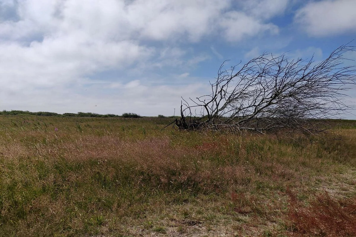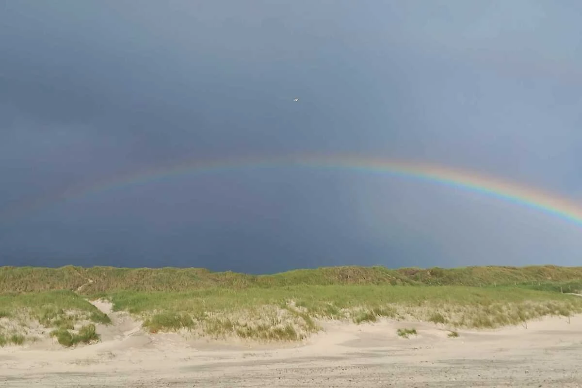 Gezellig vakantiehuis op een heuvelachtig duinperceel nabij de Noordzeekust. Open keuken-/woonruimte met een kachel voor koelere avonden. Van daar heeft men directe toegang tot een groot, gedeeltelijk overdekt terras. \