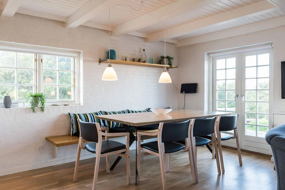 WISSELDAAG VRIJDAG - Midden in Nymindegab en op loopafstand van de steeds mooiere Noordzee vindt u dit mooie gemetselde vakantiehuis. Vanuit het huis heeft u het mooiste uitzicht over het Ringkøbing Fjord, waar u in elk seizoen het rijke natuurleven kunt ervaren. Het vakantiehuis is in 2016 volledig gerenoveerd, waaronder een mooie nieuwe lichte keuken en badkamer. De keuken en woonkamer zijn in open verbinding. Vanuit de keuken heeft u toegang tot verschillende mooie terrassen, en er is altijd een mooie beschutte hoek te vinden. Op de 1e verdieping zijn 2 echt geweldige slaapkamers ingericht. Vanuit een van de slaapkamers heeft u een uitstekend uitzicht over het fjord. Een echt geweldig vakantiehuis tussen stad en zee. Eindschoonmaak is bij de prijs inbegrepen!