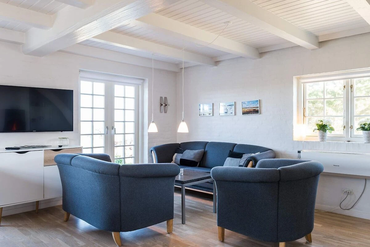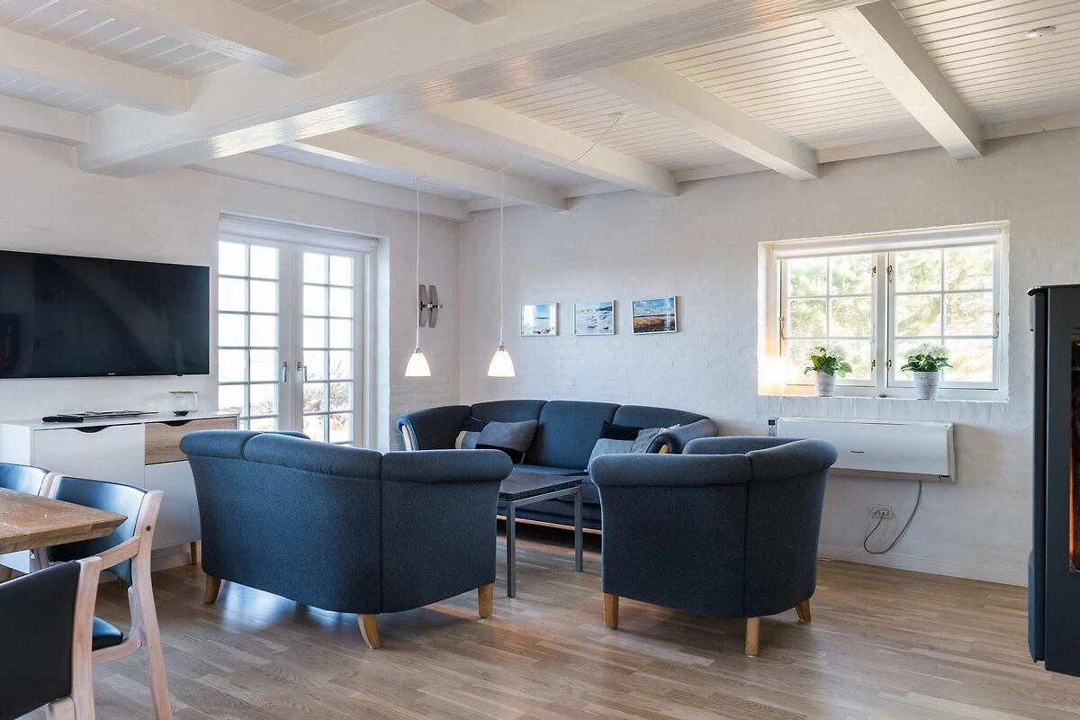 We genieten van de natuur en zijn blij met de locatie van het huis. Het ligt wat afgelegen, dus je hebt rust. Vanuit het huis kun je direct het bos inlopen. Er zijn twee mogelijkheden om naar het strand te gaan. Langs Nymindegab Storm naar het strand is het ongeveer 20 minuten lopen. Fietsen is lastig, langs de weg en over de dijk is het 30 minuten en moeilijk om over de duinen te komen, maar er is een grote parkeerplaats. De uitrusting van het huis is van hoge kwaliteit (dunschiller, kaasmes, diverse wijnglazen). Er ontbreekt eigenlijk niets. We voelen ons thuis en hebben het huis dit jaar al twee keer geboekt.