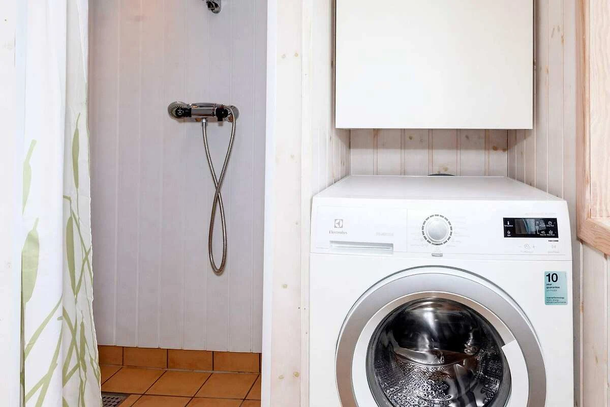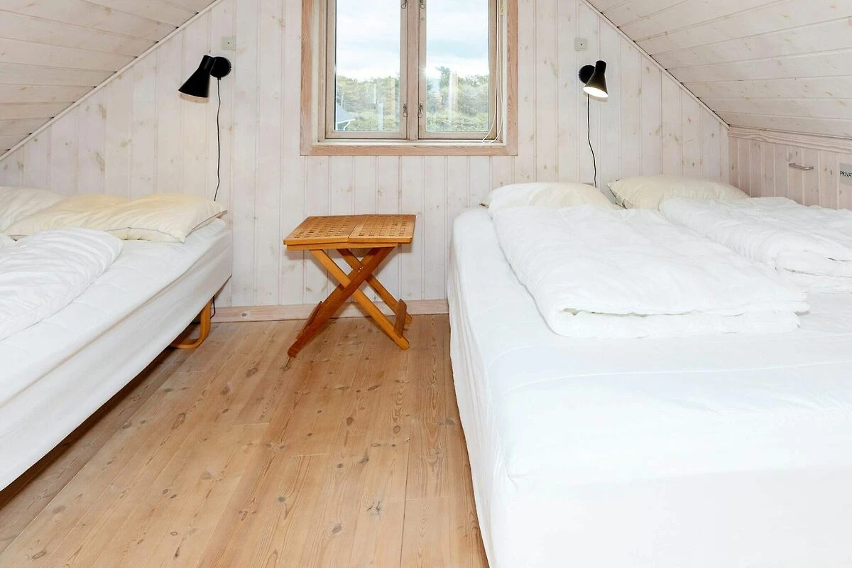 Het licht en sfeervol ingerichte vakantiehuis biedt ook enkele persoonlijke decoratie-details. De woonkeuken is goed uitgerust en heeft een open plafond tot aan de nok. Hier is voldoende ruimte voor het gezinsleven en gezellig samenzijn. Het huis heeft twee slaapkamers met elk een tweepersoonsbed en opbergruimte, evenals een grote, lichte badkamer met wasmachine en douche. Boven onder het dak vindt u de derde, open slaapruimte met twee eenpersoonsbedden, een leeshoek en mooi zeezicht door de grote vensterwand aan de ene gevelzijde.