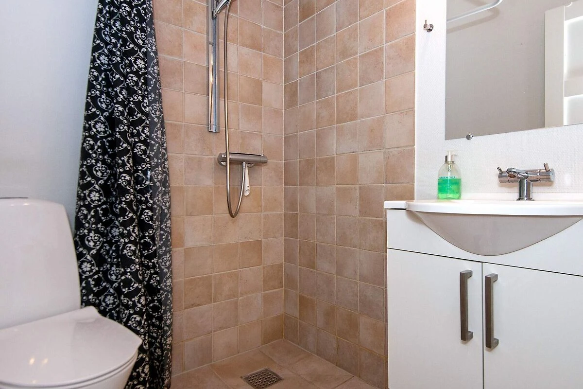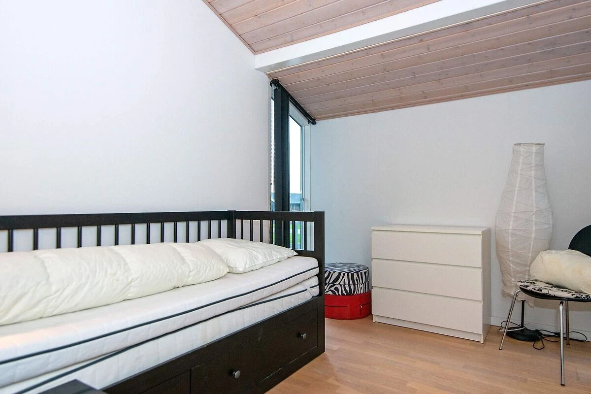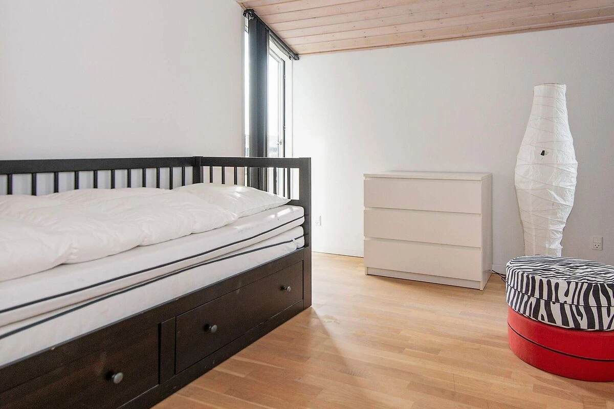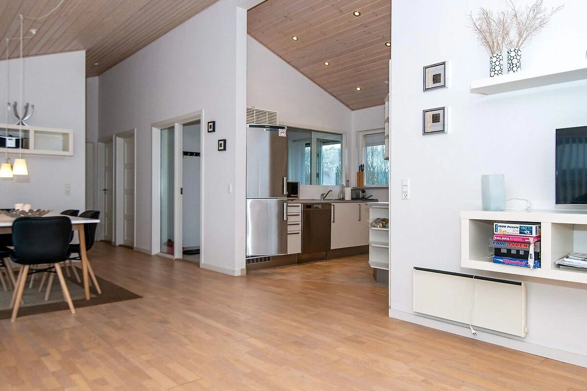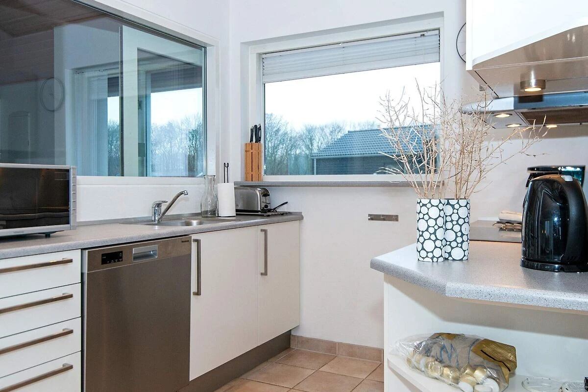 Open keuken(fornuis(elektrisch), afzuigkap, koffiezetapparaat, magnetron, afwasmachine, koelkast, vriezer(140-199L)), woon/slaapkamer(TV(kabel, duitse zender(s), Deense TV zenders (DR1 en TV2)), radio), slaapkamer(2-pers. bed), slaapkamer(2-pers. bed), slaapkamer(2-pers. bed), badkamer(vloerverwarming)(wasdroger, bad of douche, wasbak, toilet, wasmachine), badkamer(bad of douche, wasbak, toilet), spelcomputer, bubbelbad(in huis, verwarmd, 2 personen), sauna(in huis, verwarmd, 4 personen), terras, tuin, aardwarmte