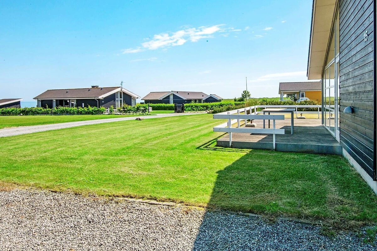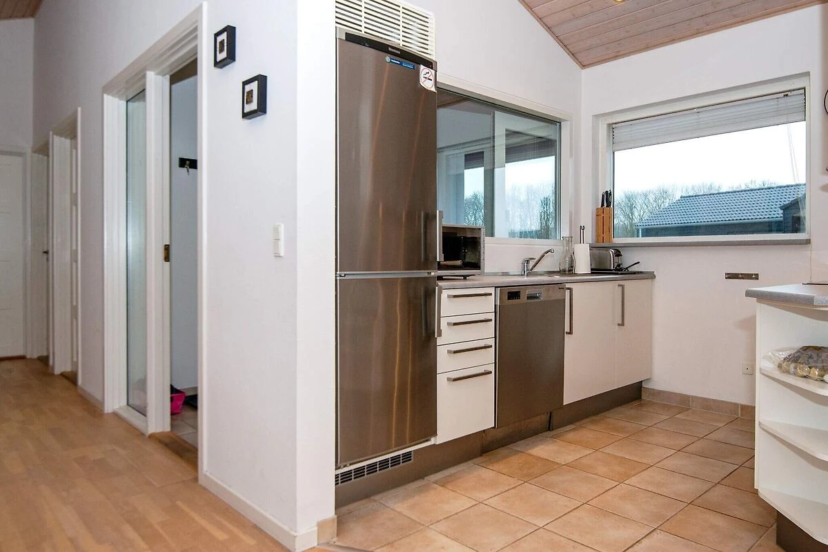 Modernes Ferienhaus unweit der Küste und mit schönem Ausblick bis zum Wasser im Kleinen Belt. Sie wohnen hier auf einem offenen Rasengrundstück in einem Ferienhausgebiet. Zur umfassenden Ausstattung des Ferienhauses gehören auch Whirlpool und Sauna für Ihre Erholung. Im Inneren befindet sich ein offener Küchen-/Wohnbereich für das Familienleben, inklusive Essecke sowie Holzofen für kühlere Abende, der zusätzlich zur energieeffizienten Wärmepumpe genutzt werden kann. Außerdem stehen drei Schlafzimmer mit jeweils einem Doppelbett zur Verfügung. Es gibt ein Badezimmer mit Dusche/WC sowie ein größeres, zweites Bad mit u.a. Whirlpool und Zugang zur Sauna. Für den Freizeitspaß stehen WLAN und eine PlayStation2 bereit. Im Außenebereich erwartet Sie eine sonnige Holzterrasse mit Gartenmöbeln und Grill. Der kinderfreundliche Strand ist nur ca. 300 m vom Ferienhaus entfernt, zudem liegt am Ende der kleinen Straße ein Gemeinschaftsspielplatz, auf dem die Kinder der umliegenden Ferienhäuser herumtollen können. Keine Vermietung an Jugendgruppen erwünscht!