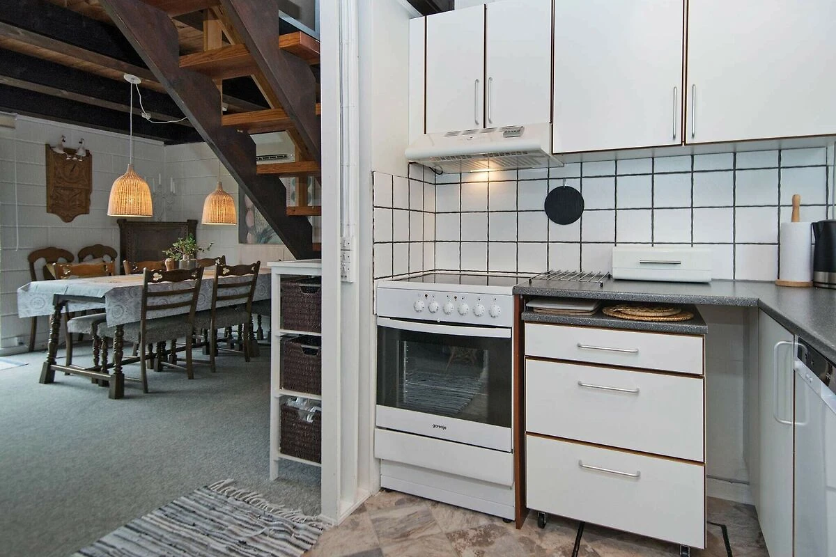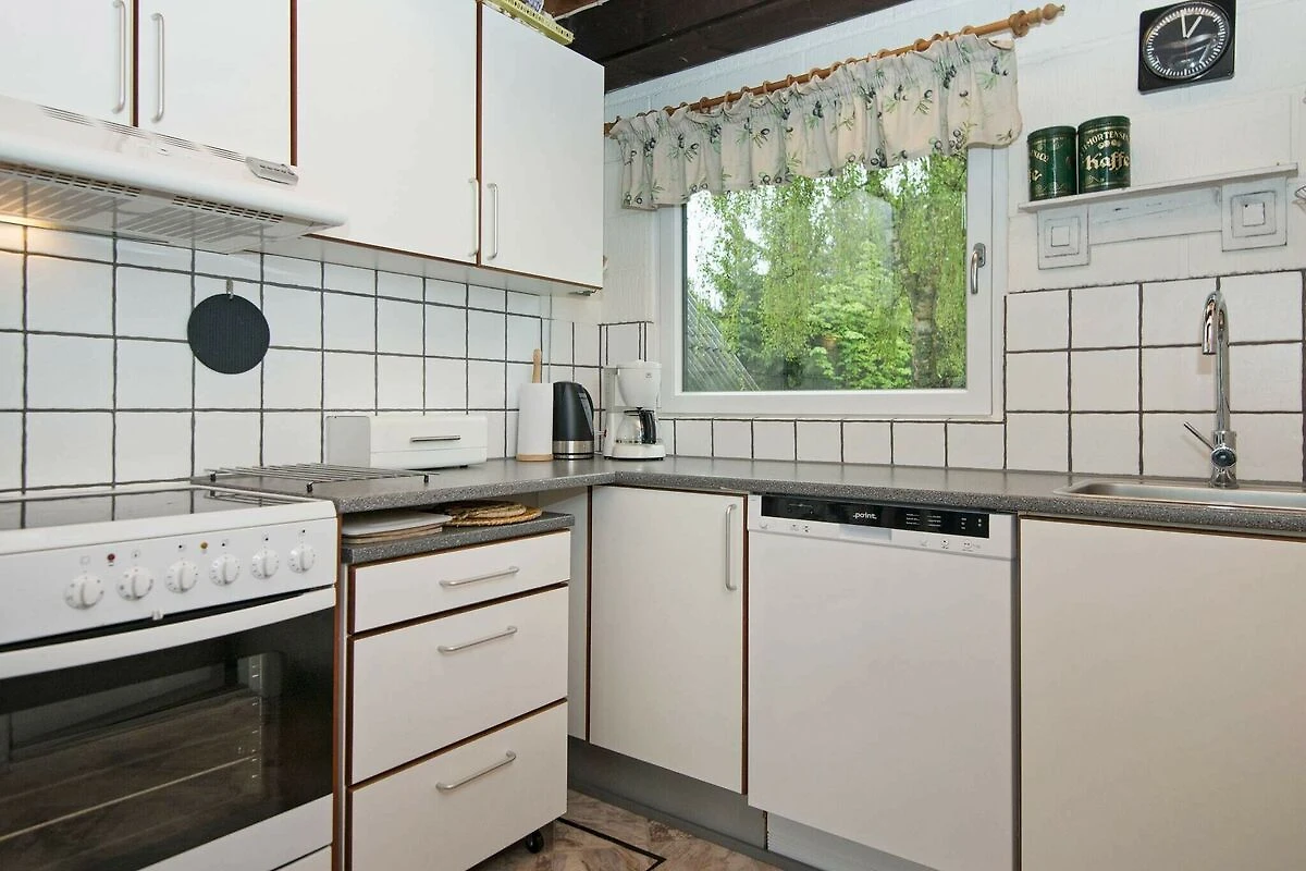 Open keuken(fornuis(elektrisch), afzuigkap, koffiezetapparaat, afwasmachine, koel-/vriescombinatie), woon/slaapkamer(TV(duitse zender(s), Deense TV zenders (DR1 en TV2)), radio), slaapkamer(2x stapelbed), slaapkamer(2x 1-pers. bed), slaapkamer(2-pers. bed), badkamer(bad of douche, wasbak, toilet), verwarming(elektrisch), tuinmeubilair, Tafel om vis schoon te maken, lucht-lucht warmtepomp
