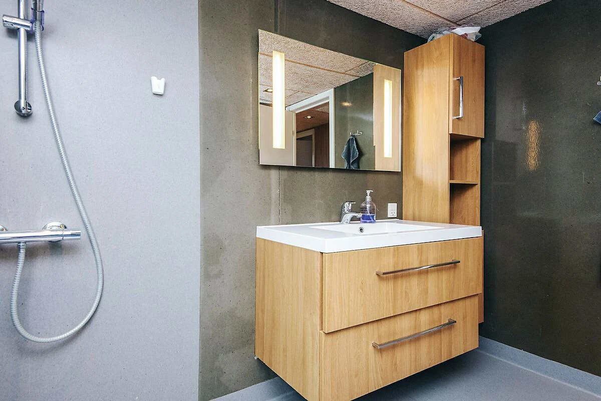 , open keuken(fornuis(elektrisch), afzuigkap, koffiezetapparaat, magnetron, afwasmachine, koelkast(+ vriesvak), wasdroger, wasmachine), woon/slaapkamer(27 m2)(TV(kabel, duitse zender(s), Deense TV zenders (DR1 en TV2)), radio), slaapkamer(2-pers. bed), slaapkamer(2x 1-pers. bed), slaapkamer(2x stapelbed), badkamer(vloerverwarming)(bad of douche, wasbak, toilet), verwarming(elektrisch), terras, tuinmeubilair, lucht-lucht warmtepomp