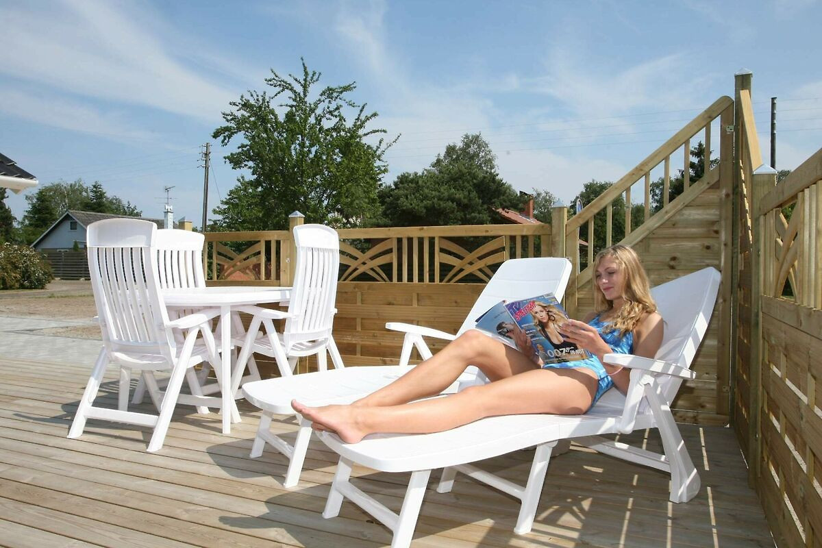 Zitkamer(2-pers. vouwbed), open keuken(fornuis(elektrisch), afzuigkap, koffiezetapparaat, magnetron, afwasmachine, koel-/vriescombinatie, wasdroger, wasmachine), woon/slaapkamer(TV(satelliet, duitse zender(s), Deense TV zenders (DR1 en TV2)), DVD-speler, CD-speler, stereo-installatie, kinderstoel), slaapkamer(2-pers. bed, kinderbed), slaapkamer(2-pers. bed), slaapkamer(2x 1-pers. bed, TV(satelliet, duitse zender(s), Deense TV zenders (DR1 en TV2)), DVD-speler), badkamer(vloerverwarming)(bad of douche, wasbak, zonnebank / solarium, toilet), badkamer(vloerverwarming)(bad of douche, wasbak, toilet), bubbelbad(in huis, verwarmd), sauna(in huis, verwarmd), verwarming(elektrisch), terras(50 m2), terras(overdekt, 12 m2), BBQ, speeltoestellen