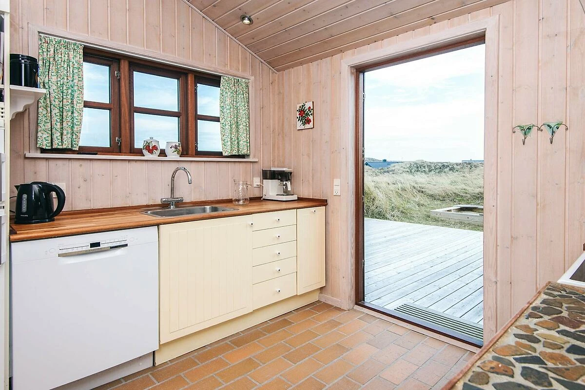 Typisch Deens huis met praktische inrichting en uitrusting (maar liefst eigen keukenmessen meenemen). Omgeven door een groot terras, zodat je constant zon hebt. De weg naar het strand is 400m lang. Luchtlijn naar de zichtbare weg tussen fjord en duinen bedraagt ongeveer 200m. Het zeer schone zandstrand is geschikt voor lange wandelingen en om te joggen.