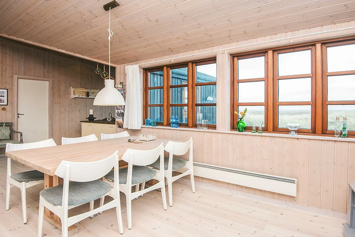 Een typisch Deens huis met functionele meubels en voorzieningen (maar neem indien mogelijk je eigen keukenmessen mee). Het is omgeven door een groot terras, zodat je altijd in de zon zit. Het pad naar het strand is 400 meter lang. Hemelsbreed is de afstand tot de zichtbare weg tussen de fjord en de duinen ongeveer 200 meter. Het zeer schone zandstrand is ideaal voor lange wandelingen en joggen.