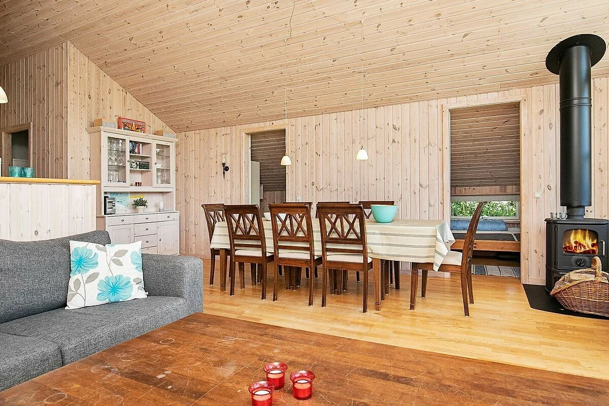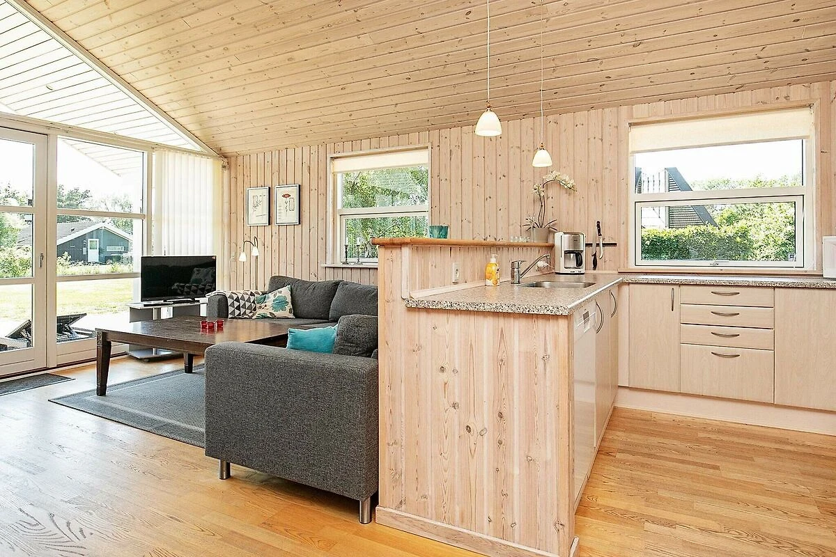 Open keuken(fornuis(elektrisch), afzuigkap, koffiezetapparaat, magnetron, afwasmachine, koel-/vriescombinatie, wasdroger, wasmachine), woon/slaapkamer(TV(duitse zender(s), Deense TV zenders (DR1 en TV2)), DVD-speler, CD-speler, stereo-installatie, kinderstoel), slaapkamer(2-pers. bed, kinderbed), slaapkamer(2-pers. bed), slaapkamer(2x 1-pers. bed), slaapkamer(2x 1-pers. bed), badkamer(vloerverwarming)(bad of douche, wasbak, toilet), badkamer(vloerverwarming)(wasbak, toilet), bubbelbad(in huis, verwarmd), sauna(in huis, verwarmd), verwarming(elektrisch), terras(62 m2), terras(overdekt, 12 m2), BBQ