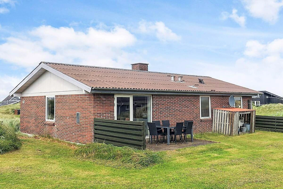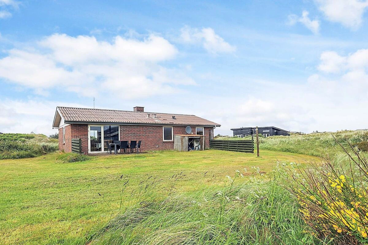 Einfach und zweckmäßig eingerichtetes Ferienhaus. Liegt auf einem ca. 1000 m² großen Dünengrundstück, nur 500 von der Küste bei Lild Strand. Das massive Haus verfügt über ein Wohnzimmer mit Holzofen, einigen deutschen TV-Sendern zur Auswahl sowie Sitz- und Essecke. Zur Küchenausstattung von 2019 gehören u.a. Cerankochfeld und Umluftofen. Außerdem drei Schlafzimmer und ein Bad mit Dusche/WC und Fußbodenheizung im Haus. Steht auf einem kleinen Naturgrundstück mit Terrasse, in einem attraktiven Ferienhausgebiet.