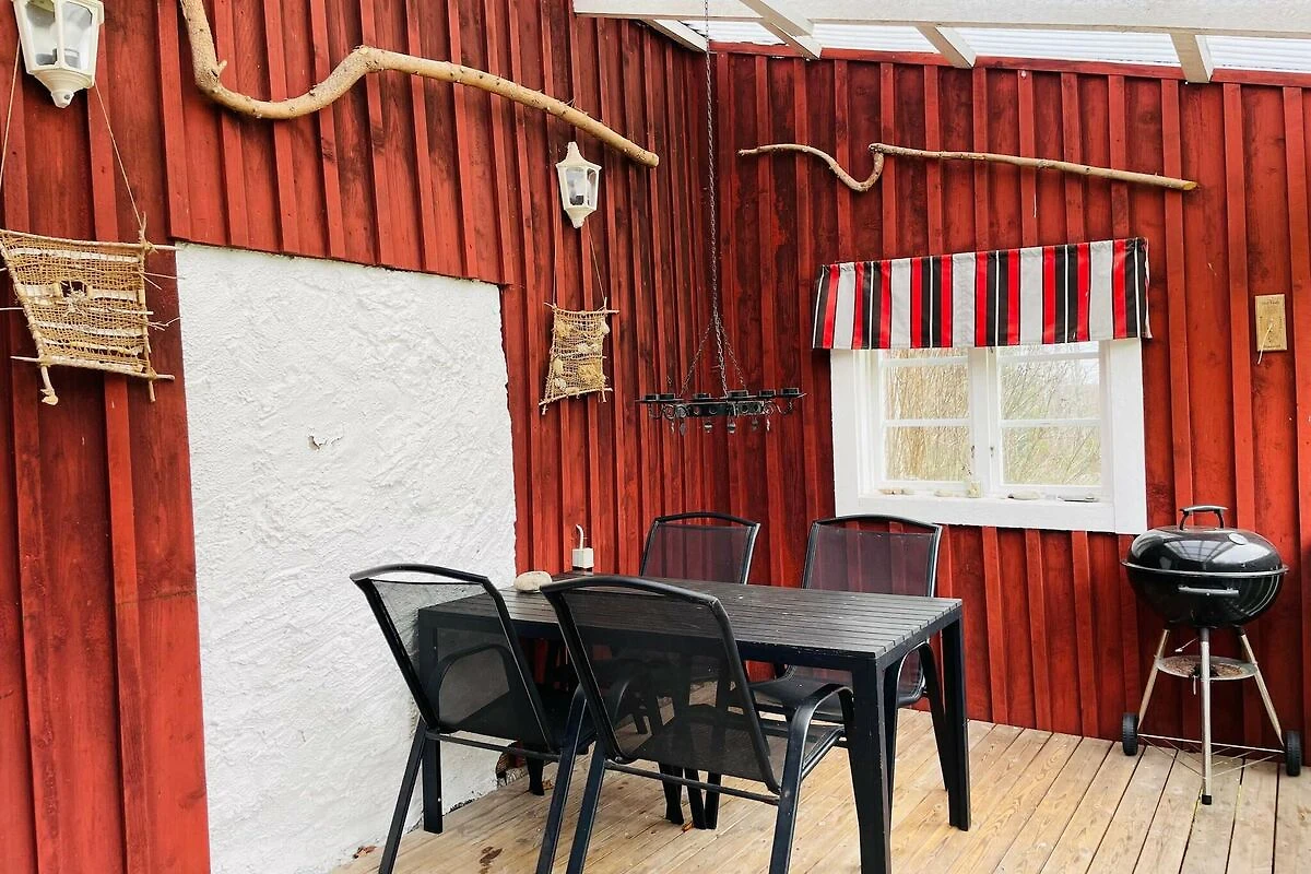 Keuken(elektrische verwarming, 12 m2)(fornuis(2 kookplaten), koffiezetapparaat, magnetron, koelkast(+ vriesvak)), woon/slaapkamer(16 m2)(TV(satelliet, duitse zender(s), zweedse TV zenders), open haard), slaapkamer(4 m2)(2-pers. bed), slaapkamer(4 m2)(2x 1-pers. bed), badkamer(wasbak, douche, toilet, wasmachine), verwarming(elektrisch), terras(overdekt), tuinmeubilair, BBQ