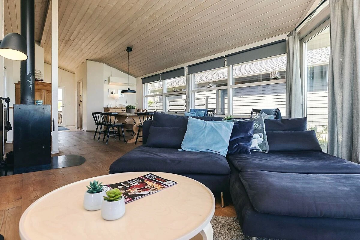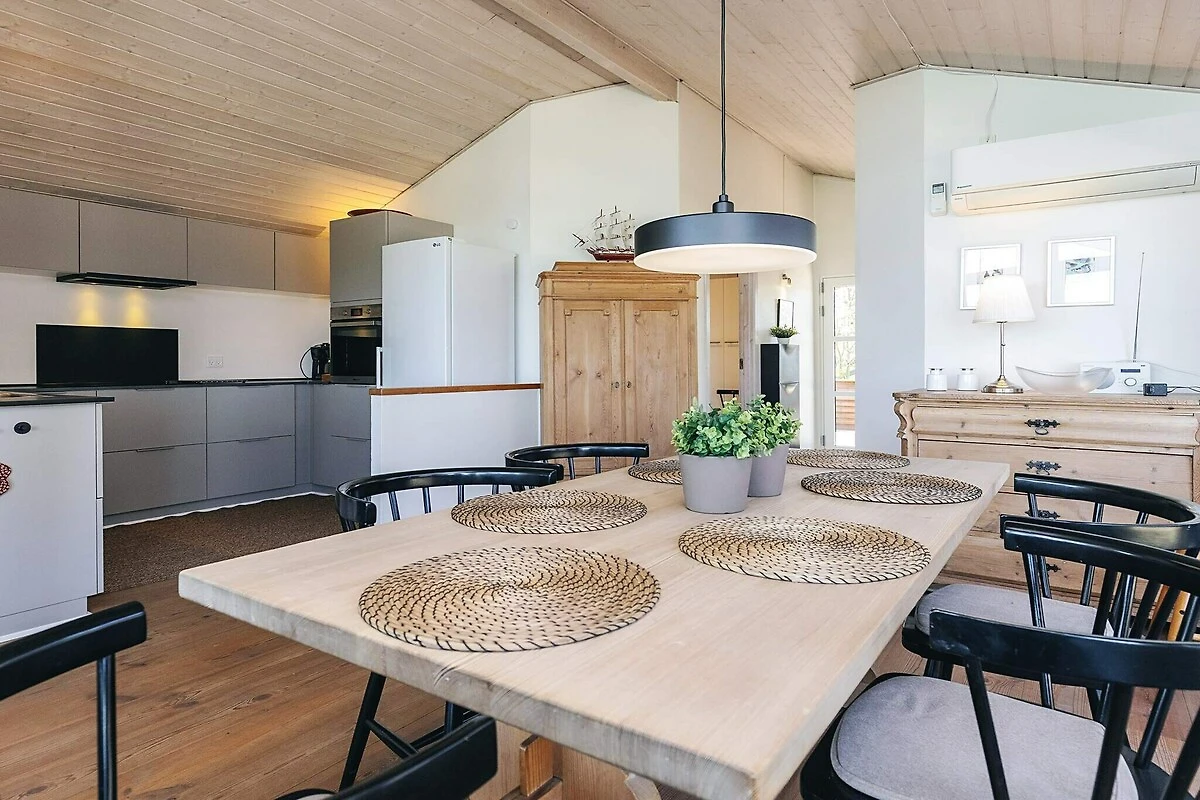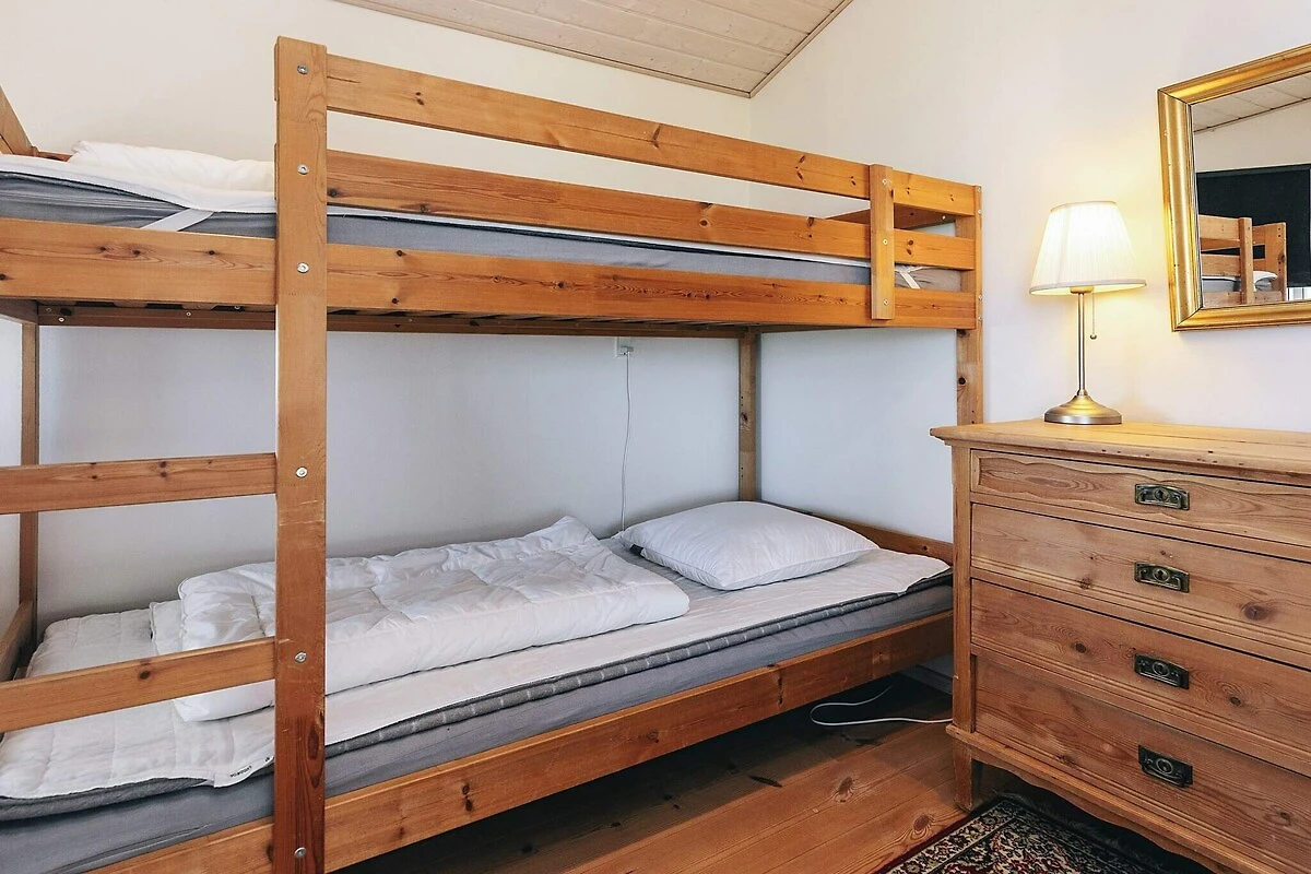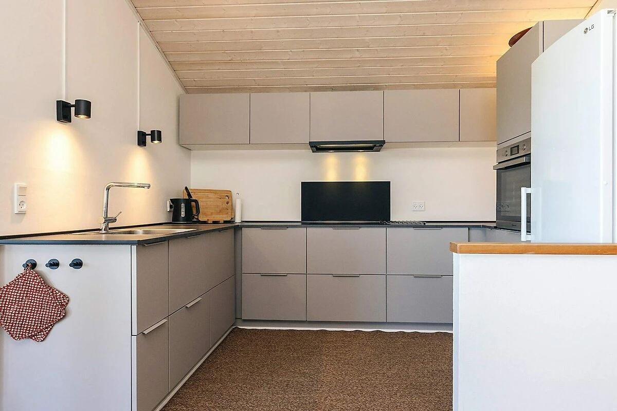 , open keuken(fornuis(elektrisch), afzuigkap, koffiezetapparaat, vriezer(1-59L), koel-/vriescombinatie, wasmachine), woon/slaapkamer(TV(duitse zender(s), Deense TV zenders (DR1 en TV2)), radio), slaapkamer(2-pers. bed), slaapkamer(2x stapelbed), badkamer(bad of douche, wasbak, toilet), afwasmachine, verwarming(elektrisch), terras, terras(overdekt), BBQ, lucht-lucht warmtepomp