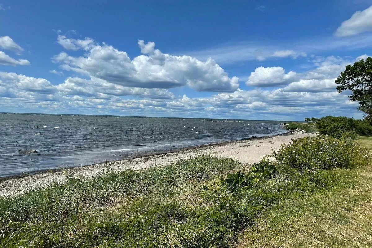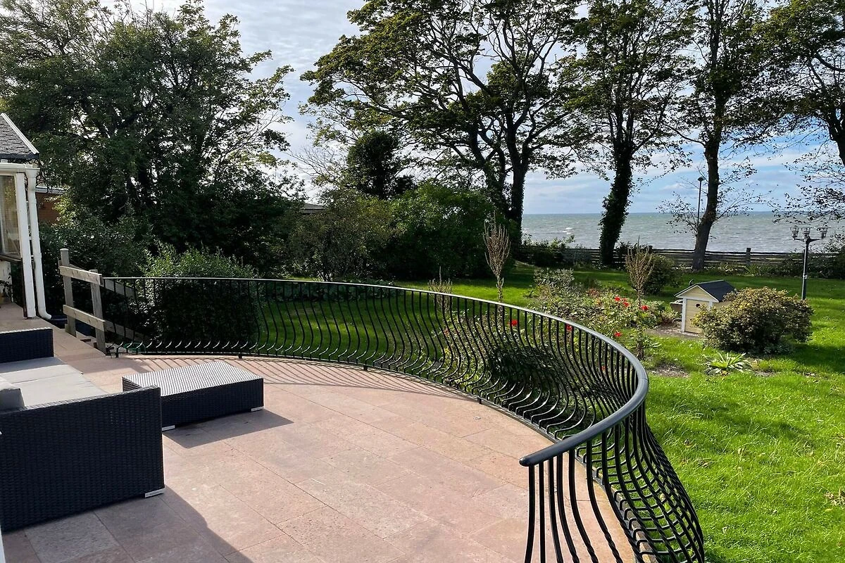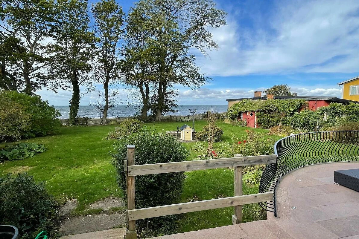De ruime ambiance, het terras met tuin, het uitzicht op de Sund, de rustige ligging.