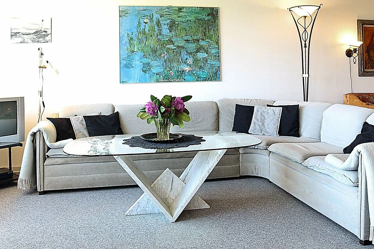 Groot appartement, uitzicht op de fjord, dicht bij het strand, badkamer, keuken, woon- en eetkamer, zeer aardige verhuurder in het naastgelegen gebouw, dichtbij Hvide Sande