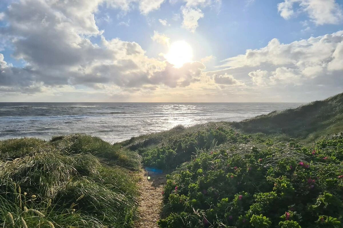 Het ligt op afstand van de grote vakantiehuizen aan de fjord / Het heeft een direct pad naar de zee, wij ook