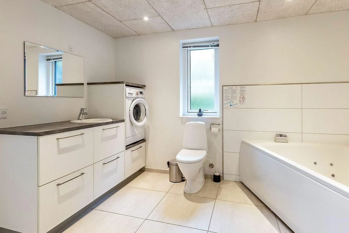 Bei Hasmark Strand finden Sie dieses hell eingerichtete Ferienhaus mit Whirlpool im Bad für erholsame Stunden. Es stehen im Haus zwei Badezimmer mit jeweils Dusche und angenehmer Fußbodenheizung zur Verfügung, eines davon zudem mit einem Whirlpool für zwei Personen. Außerdem im Haus offener, zweckmäßig ausgestatteter Küchen-/Wohnbereich für das Familienleben. Gute technische Ausstattung im Haus, mit u.a. WLAN und deutschen TV-Sendern zur Auswahl. Es gibt vier funktionale Schlafzimmer, drei davon mit je einem Doppelbett, das vierte mit zwei Einzelbetten. Außerdem Kinderbett und Hochstuhl für die Jüngsten. Zugang vom Wohnbereich zur Holzterrasse und weiter zum Rasengrundstück mit einigen Spielgeräten für die Jüngsten. Keine Vermietung an Jugend- oder Handwerkergruppen erwünscht!A refundable deposit might be charged closer to your check-in date. The security deposit ensures a smooth stay and covers any additional services or consumption charges.This deposit covers utilities consumed during your stay and any additional services that may be taken.The final amount will be adjusted based on actual meter readings, actual usage of extra services, and any remaining balance will be refunded within 21 days after checkout.This deposit simply acts as a prepayment for charges that you would anyways pay for, ensuring a seamless stay and check-out experience.