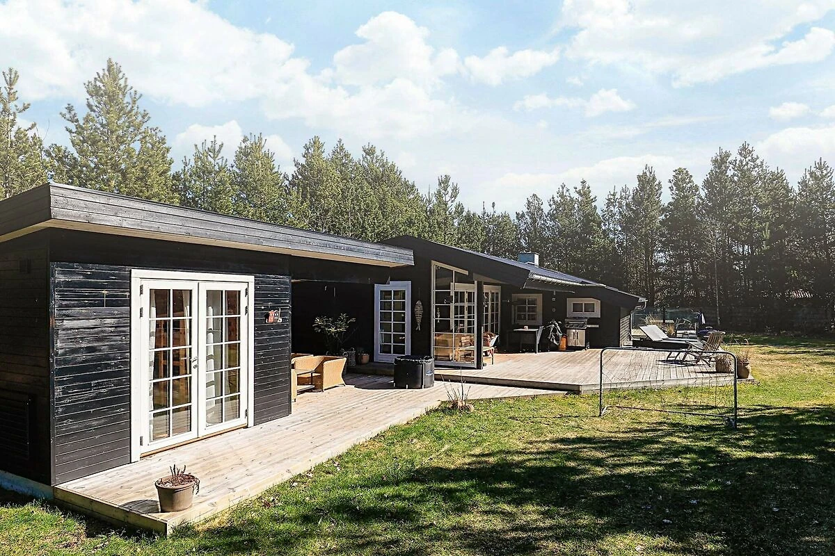Open keuken(fornuis(elektrisch), koffiezetapparaat, magnetron, koelkast(+ vriesvak)), woon/slaapkamer(TV(duitse zender(s), Deense TV zenders (DR1 en TV2)), radio), slaapkamer(2-pers. bed), slaapkamer(2-pers. bed), slaapkamer(4x stapelbed), badkamer(vloerverwarming)(bad of douche, wasbak, toilet), badkamer(wasbak, toilet), verwarming(elektrisch), terras(overdekt), BBQ, lucht-lucht warmtepomp