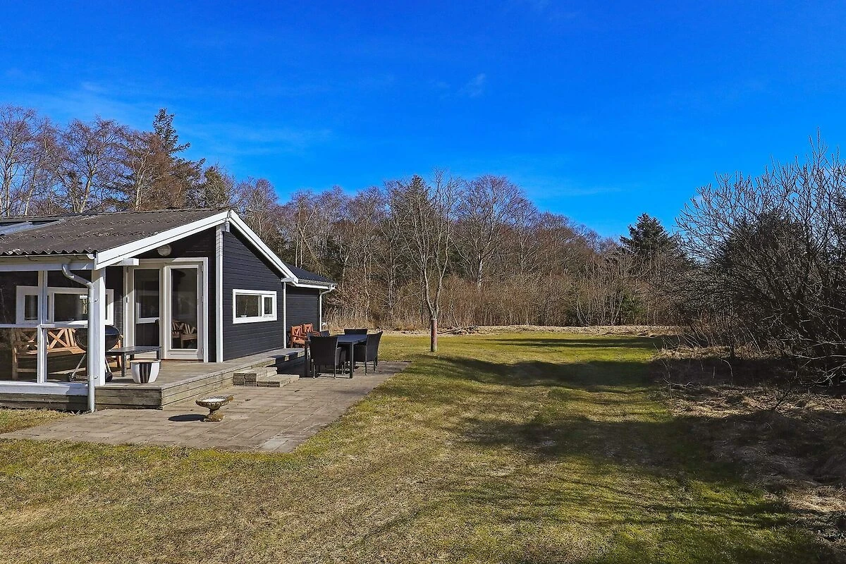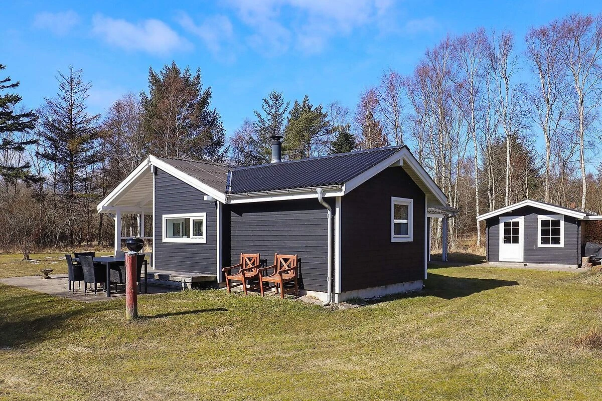 Ferienhaus in der landschaftlich reizvollen, ruhigen Umgebung von Råbjerg/Bunken und nicht weit von Råbjerg Mile. Das ältere Holzhaus ist sehr gut instand gehalten. Innen stehen drei Schlafzimmer, ein helles Bad mit Dusche/WC sowie ein gemütlicher Küchen-/Wohnbereich mit leicht rustikaler Note zur Verfügung, zu der auch der Kaminofen wunderbar passt. Zudem praktischer Hauswirtschaftsraum mit Waschmaschine vorhanden. Vom Wohnbereich hat man Zugang zur überdachten Terrasse davor, die nach Süden ausgerichtet und mit Sitzgelegenheiten und Grill ausgestattet ist. Das Naturgrundstück mit Bäumen ringsum ist weitläufig und bietet auf der Rasenfläche Platz für Spiel, Sport und Spaß an der frischen Luft. Es sind nur 1,5 km zum nächsten Strandufer. Das Ferienhaus liegt auf halbem Wege zwischen der Nordseeküste und dem Kattegat auf Skagen Odde, zudem nur 4 Gehminuten über kleine Pfade vom Golfplatz Hvideklit entfernt. Zur Nordsee sind es etwa 8 km via der kleinen Landstraße in Richtung Skiveren. Hier gibt es breite Sandstrände und man darf auch mit dem Auto am Strandufer entlang fahren, allerdings nur auf eigene Gefahr. Nur etwa 1,2 km weiter östlich liegt die etwas sanftere Ostseeküste, mit flacherem Uferbereich und nicht ganz so hohen Wellen wie im Westen. Vom Bahnhof Bunken Station fahren Züge nach Skagen und Frederikshavn. Keine Vermietung an Jugendgruppen erwünscht!A refundable deposit might be charged closer to your check-in date. The security deposit ensures a smooth stay and covers any additional services or consumption charges.This deposit covers utilities consumed during your stay and any additional services that may be taken.The final amount will be adjusted based on actual meter readings, actual usage of extra services, and any remaining balance will be refunded within 21 days after checkout.This deposit simply acts as a prepayment for charges that you would anyways pay for, ensuring a seamless stay and check-out experience.